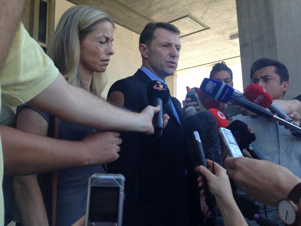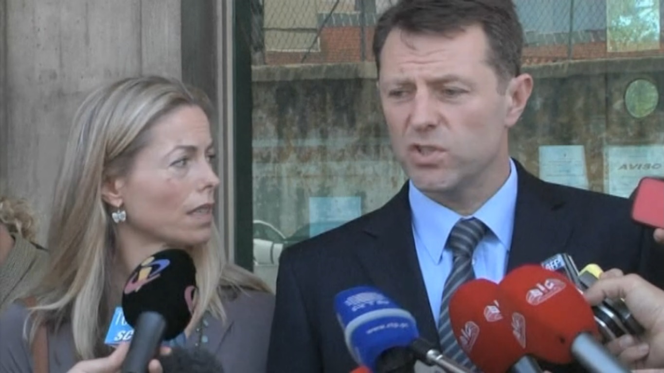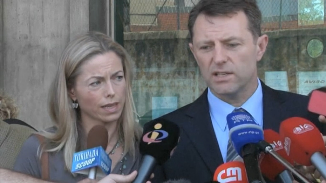 Gerry McCann (right), parents of missing British youngster Madeleine McCann, talk to the press after delivering statements