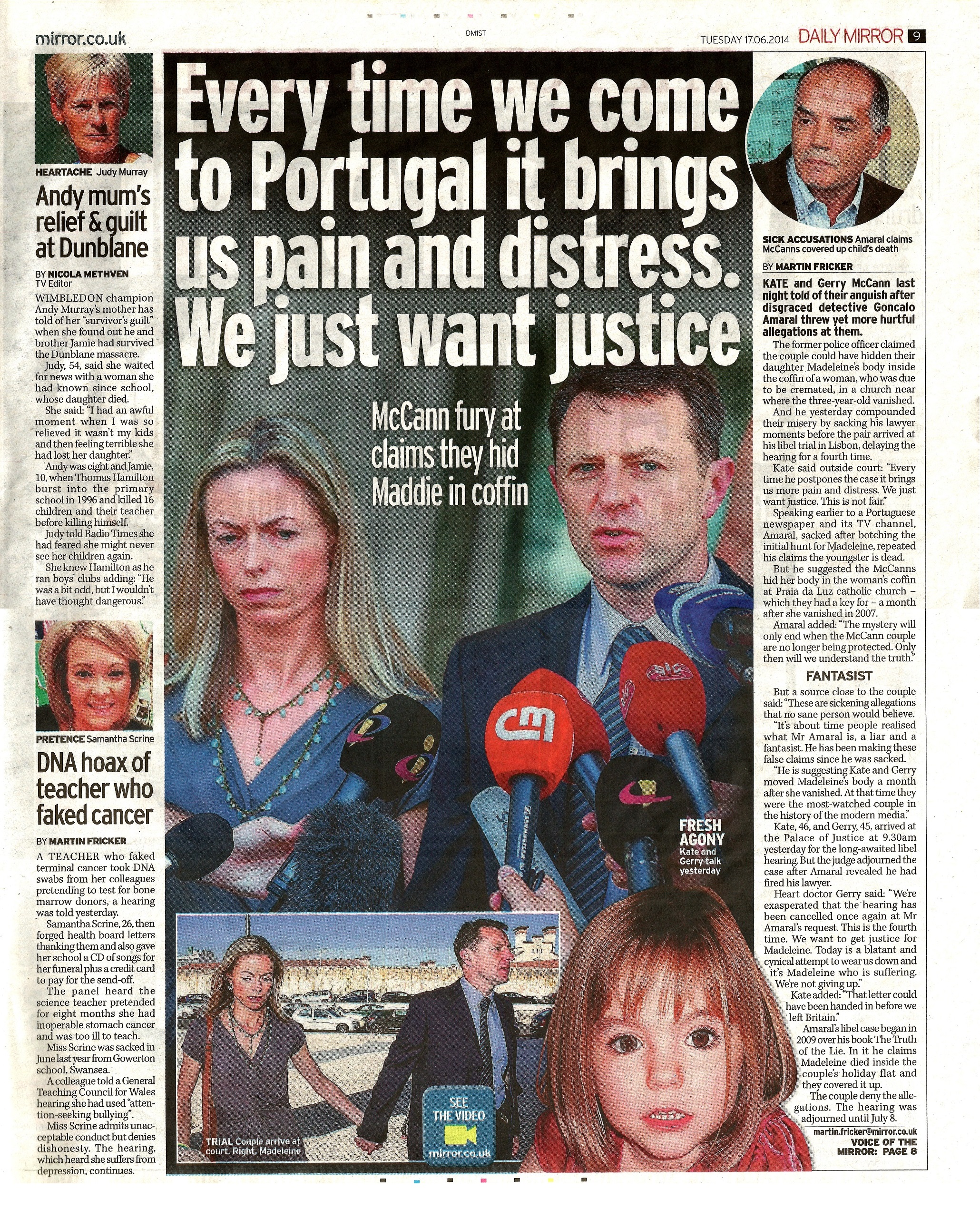 Madeleine McCann's parents for claiming they faked her abduction is planning to sue them BACK, 27 July 2014