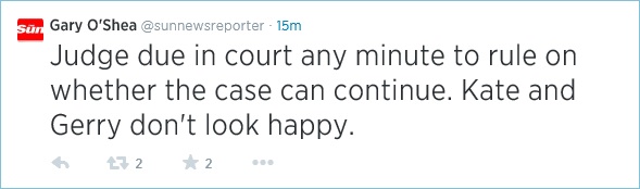 "Kate and Gerry do not have to give evidence so they do not need to be here. I am confident of winning."