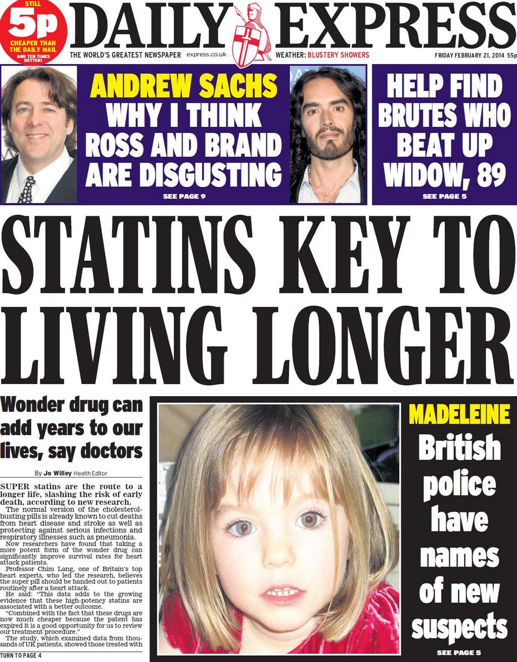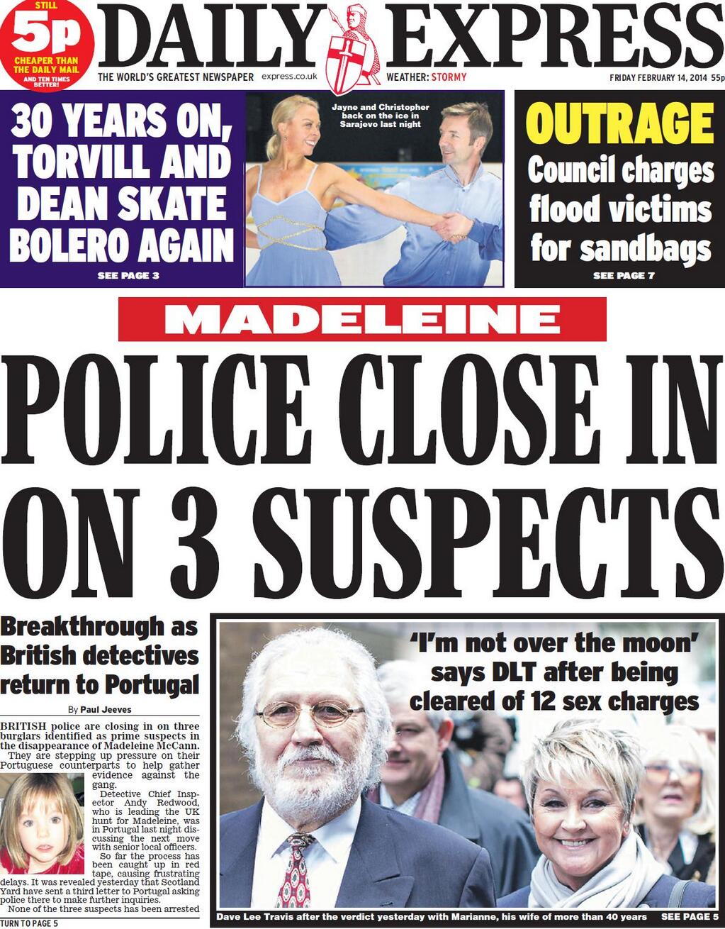 that there had been a dearth of "Missing Madeleine" stories on the front page of the Daily Express recently - but