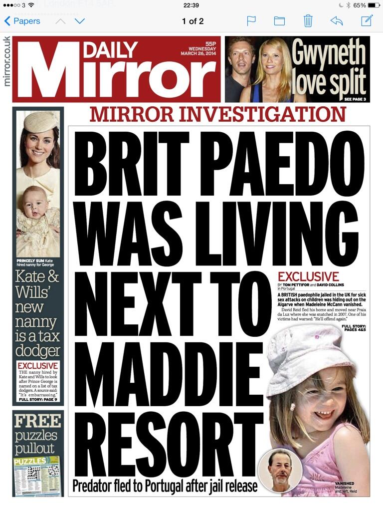 25 March 2014 The Daily Mirror turn their attention to David Reid, a British paedophile jailed in the UK for sex attacks on children