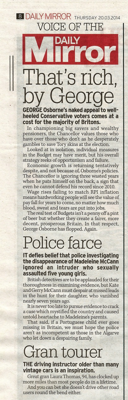 10 March 2014 The Daily Mirror publish an article entitled 'Missing Malaysia Airlines plane: Other mysterious cases of people,