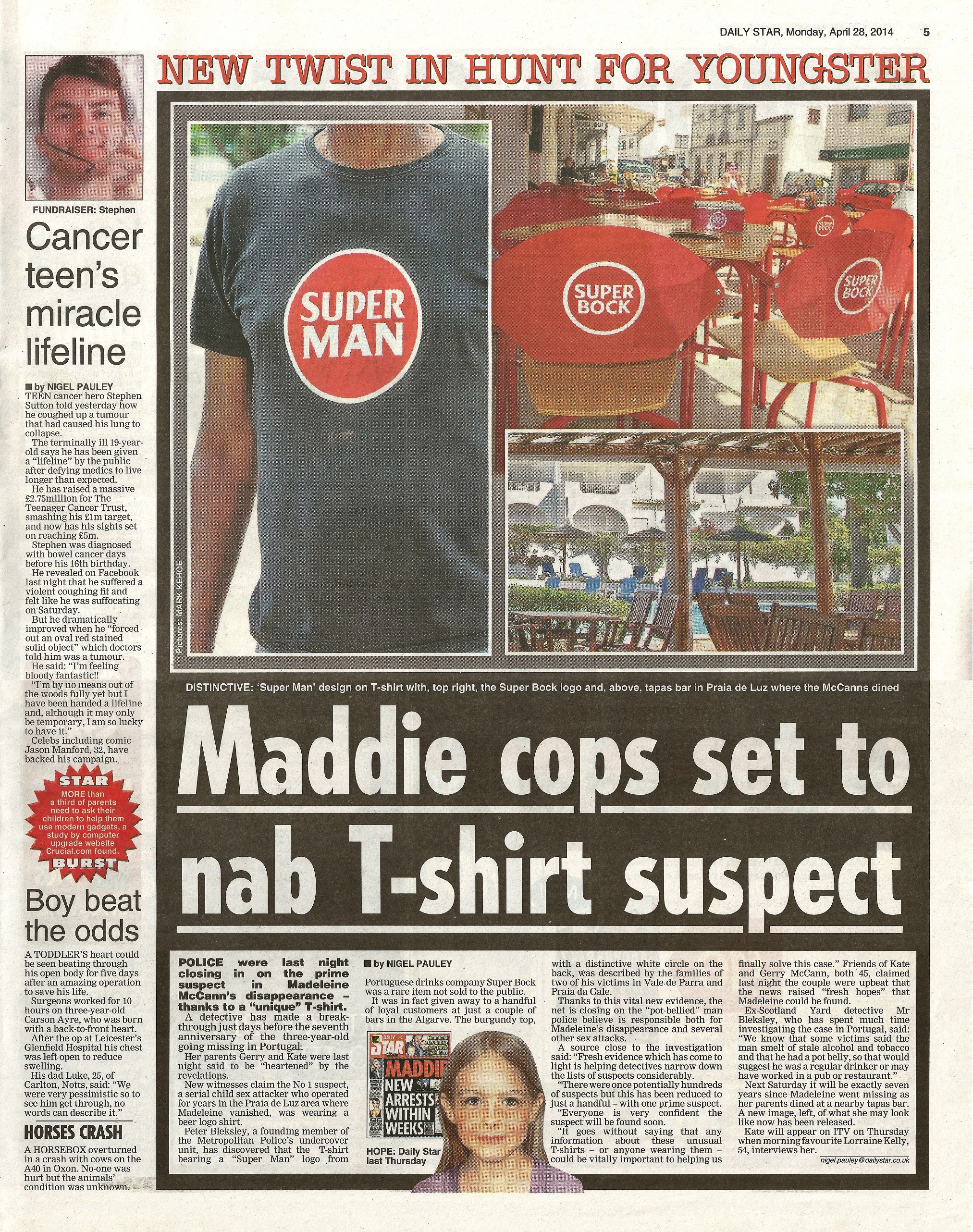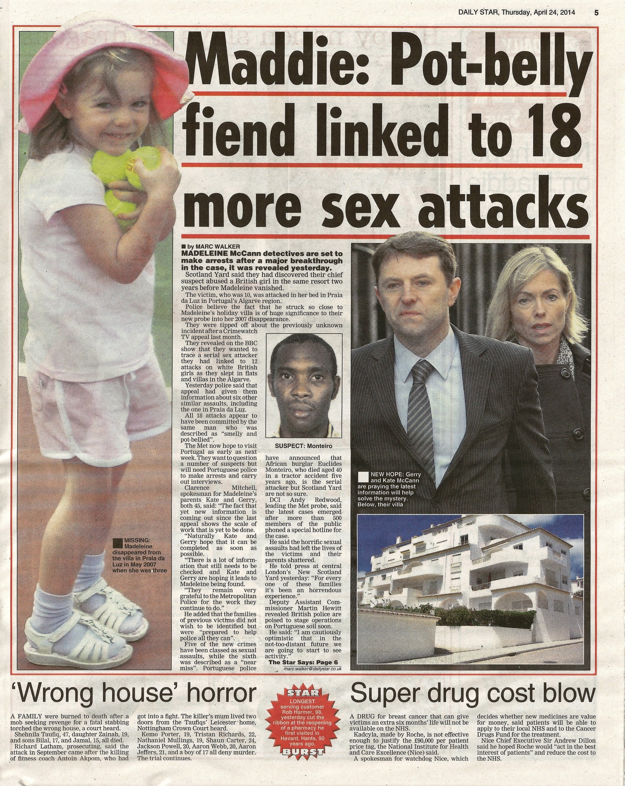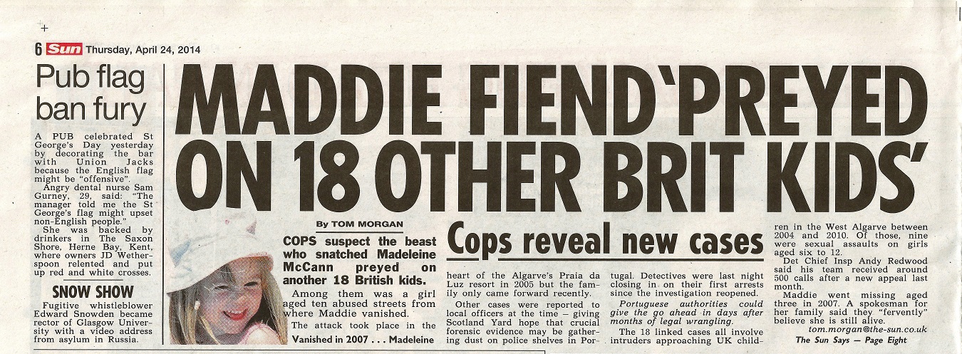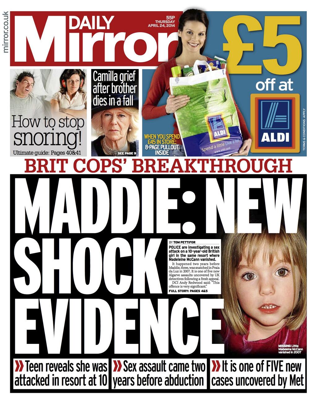19 April 2014 The Daily Mirror claim police want to question five British holiday flat owners over who was in their