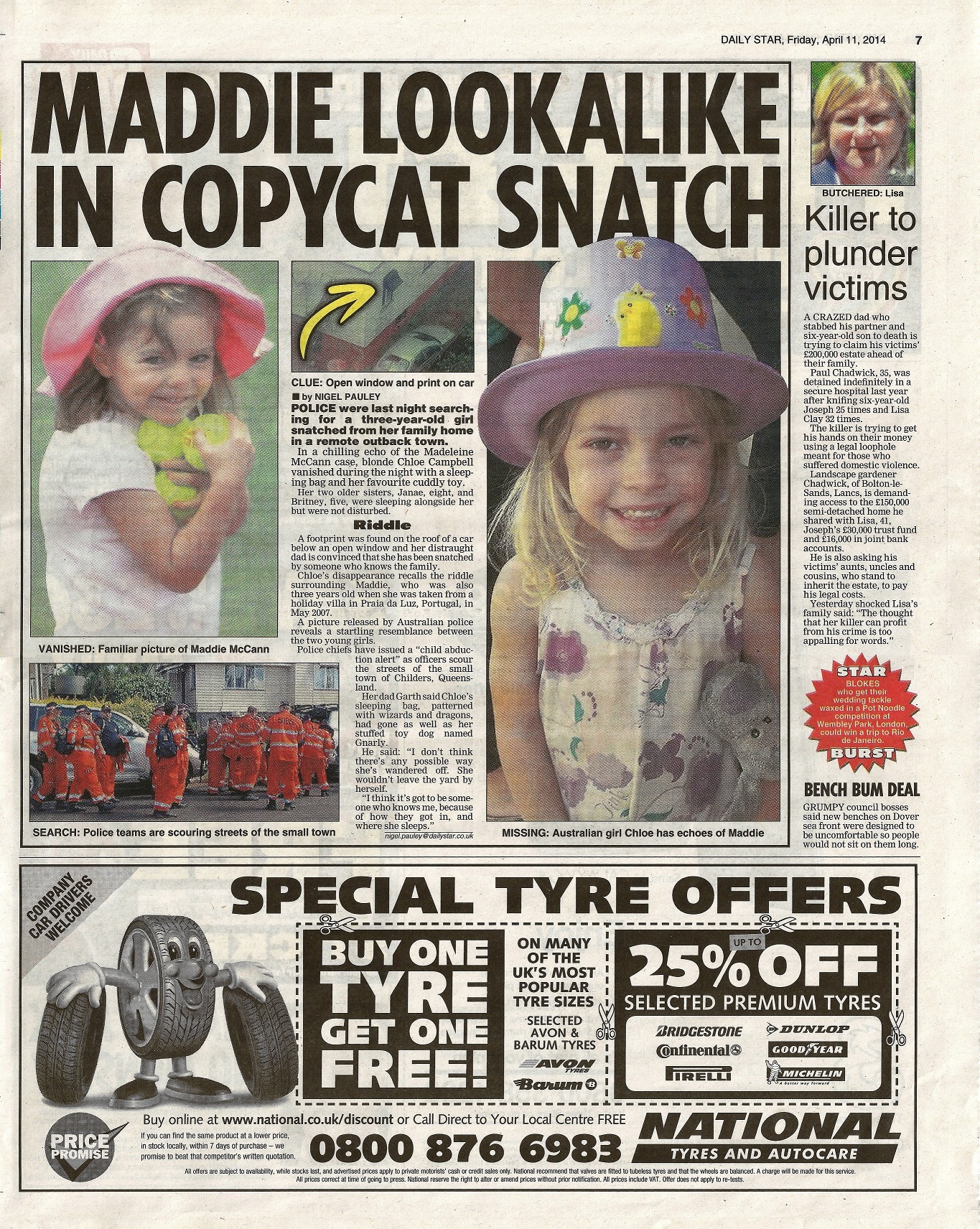 ![MISSING: Madeleine McCann and Australian girl Chloe Campbell [PA/NC]](sitebuilderpictures/dailystar110414b.jpg)