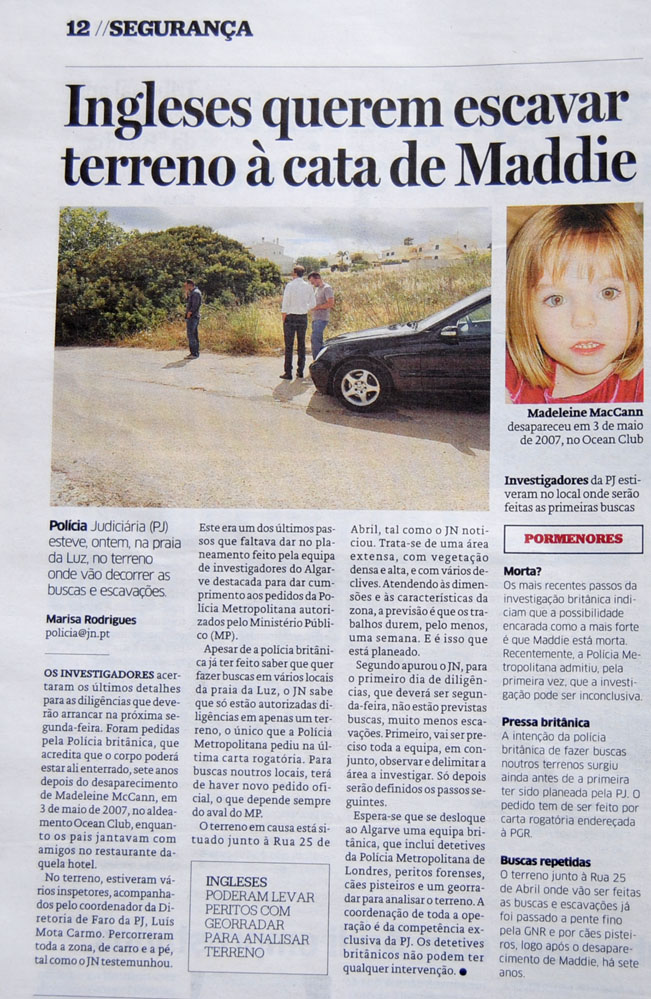 English want to dig ground in search for Maddie Jornal de Notícias (paper edition)