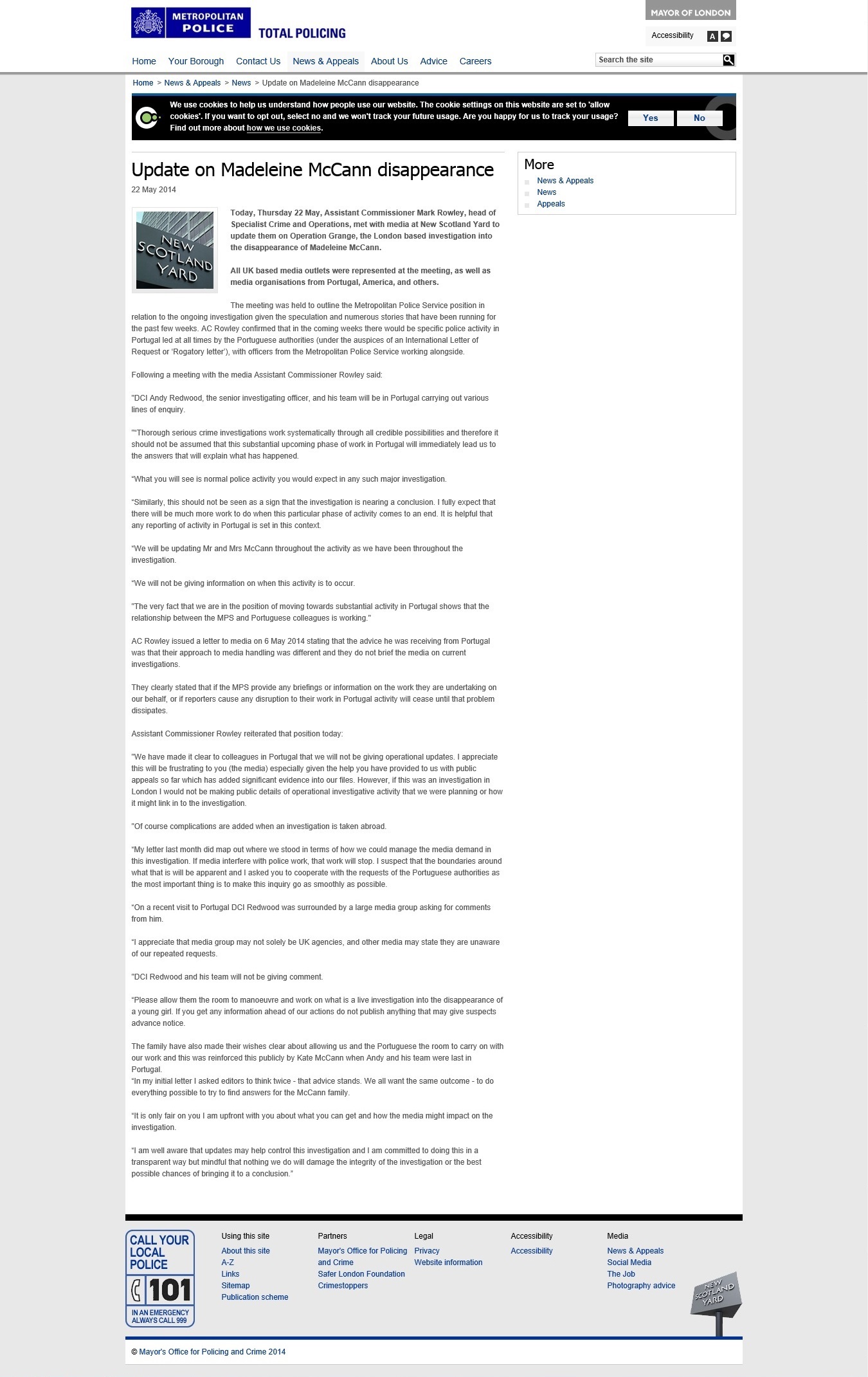 Yard to update them on Operation Grange, the London based investigation into the disappearance of Madeleine McCann.