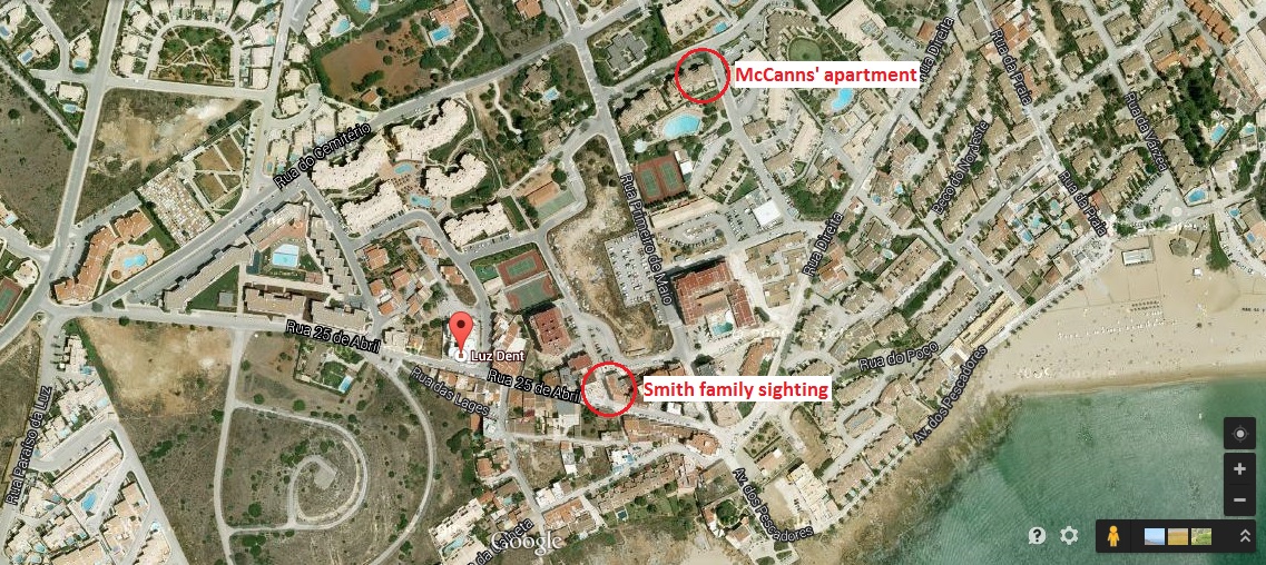 is close to where tourist Martin Smith said he saw a little girl in pink pyjamas being carried by a man on the night Maddie,
