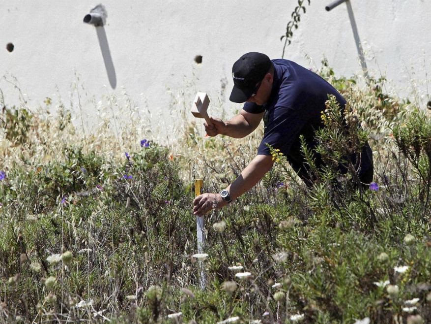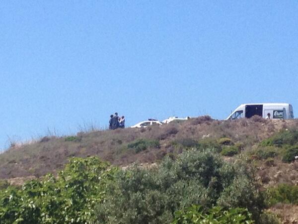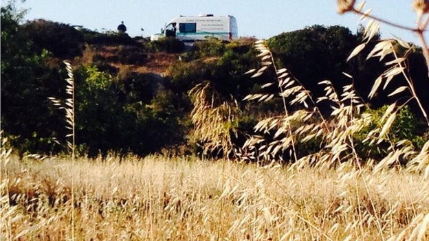 02 June 2014: British detectives arrive in Praia da Luz to begin searching an area of scrubland known locally as 'The Mound'. The area is cordoned off as detectives plot the terrain ahead of possible excavations.