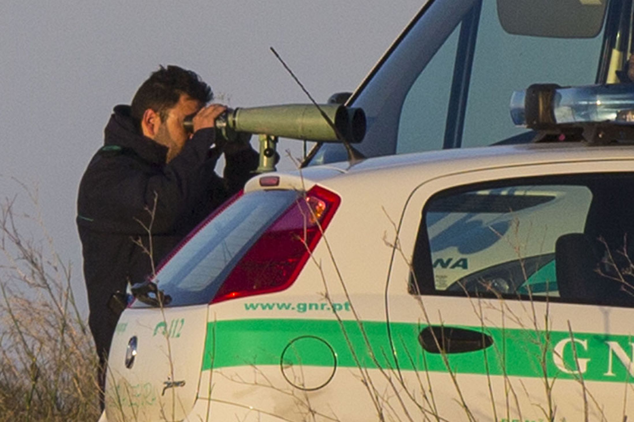 A team of Portuguese police officers, some with dogs, and at least four vehicles have been stationed on a mound to the west of the town since early this morning.