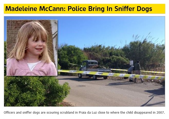 after British police brought in sniffer dogs on Tuesday to help search the area, which is a five-minute walk from the apartment