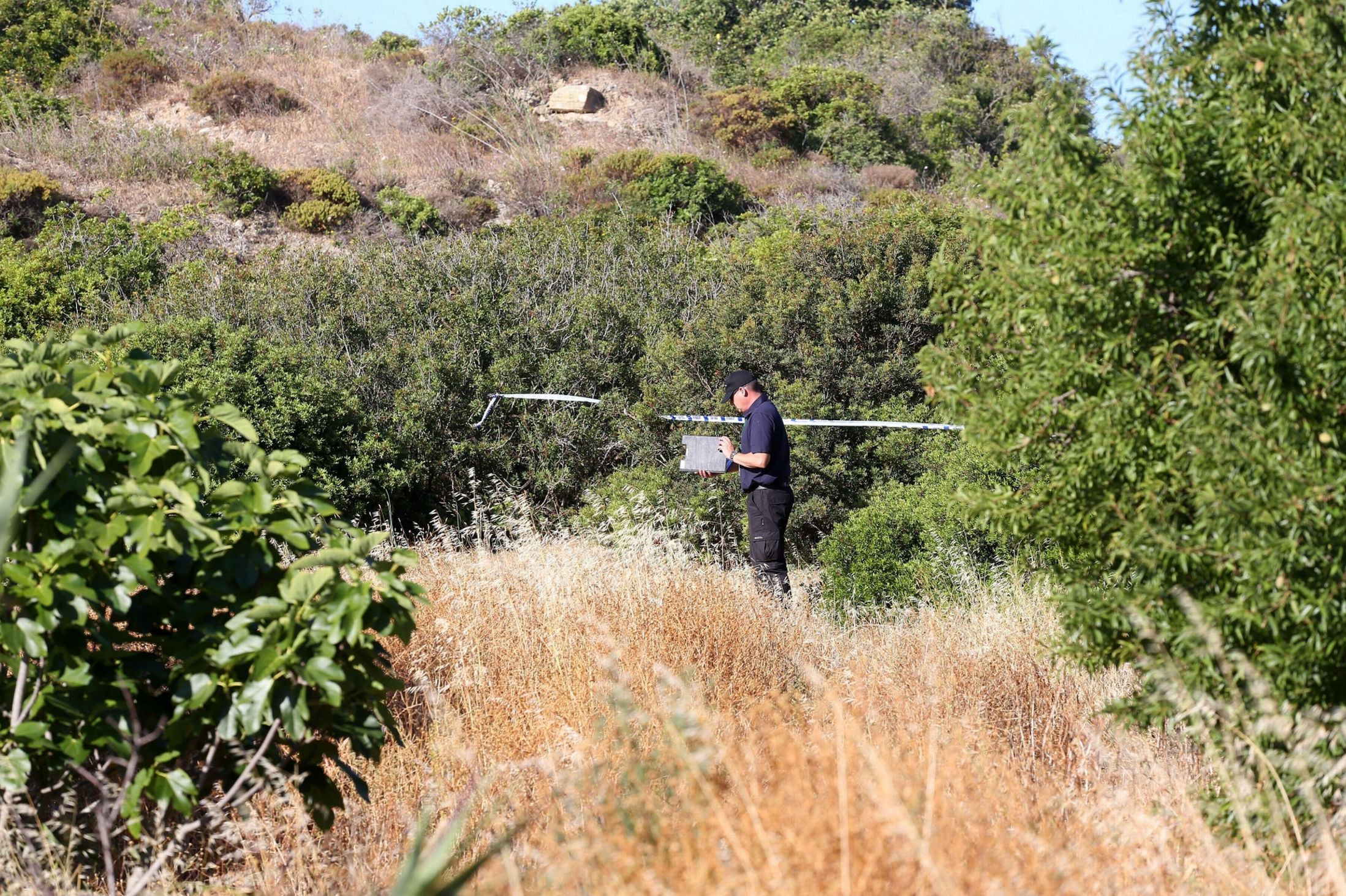 the hill, carrying out fingertip searches near shrubbery where they took away bits of land to be analysed.