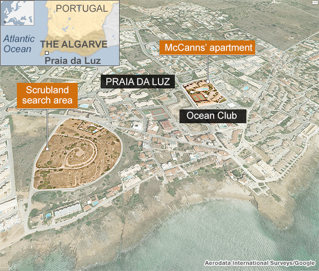 close to where Madeleine vanished in the Algarve resort of Praia da Luz in 2007.