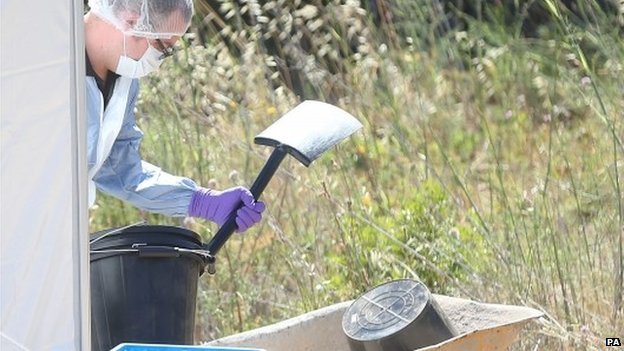 Sniffer dogs scoured the waste ground and police erected tents over several locations