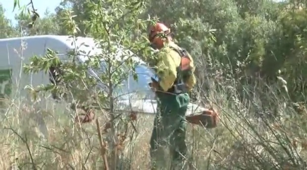Four workers used chainsaws and strimmers to cut back swathes