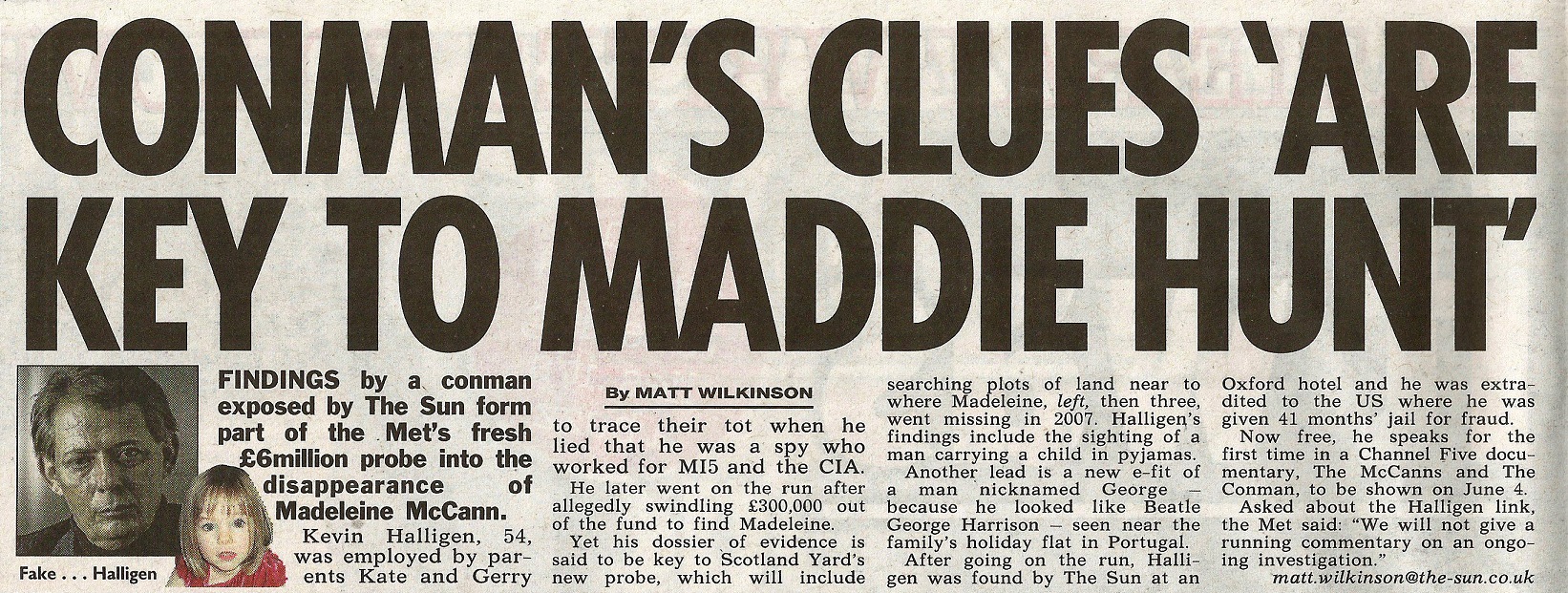 in which a man named Kevin Halligen convinced the parents of missing Madeleine McCann, he was a secret agent. It soon transpired