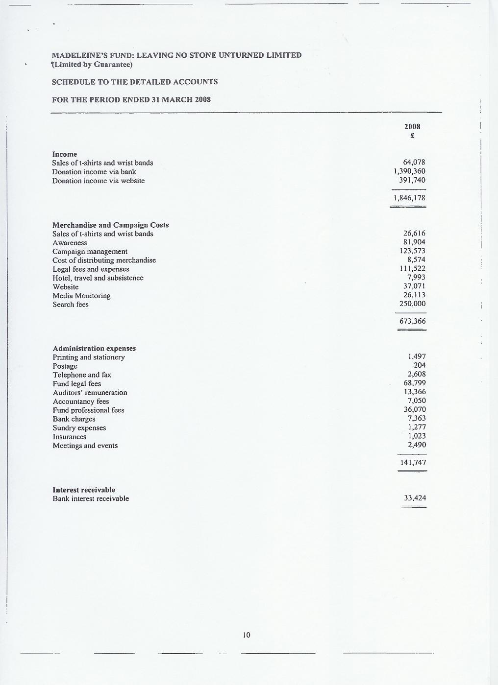 Fund: Leaving No Stone Unturned Ltd for year ending 31 March 2008.