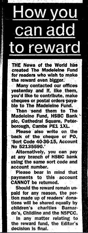 But what had happened to the News of the World Find Madeleine Reward Fund?