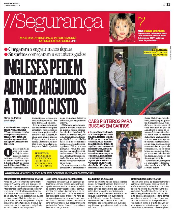 As far as DN [Diário de Notícias] was able to establish, the suspects have already been made