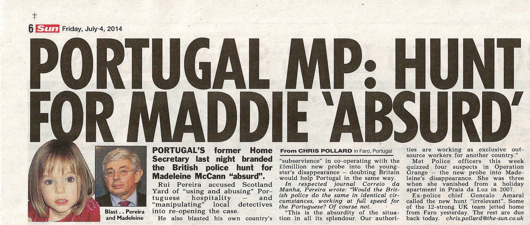 brands the British police hunt for Madeleine as "absurd". Gonçalo Amaral describes it as "irrelevant".
