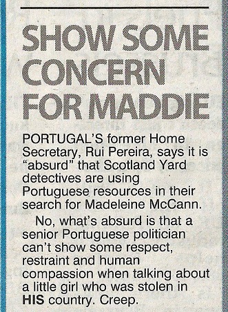 worth and bring widespread criticism of Scotland Yard in Portugal. Rui Pereira, a formerHome Secretary,