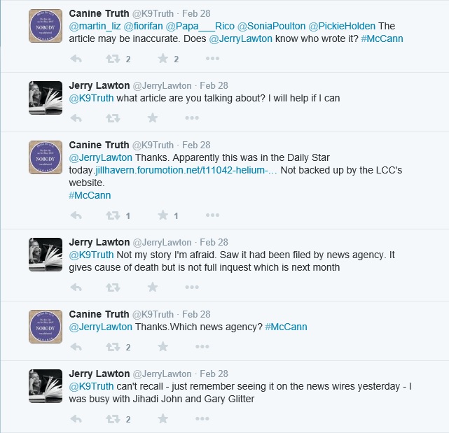 on the #McCann Twitter hashtag, under the pseudonym of 'sweepyface'.