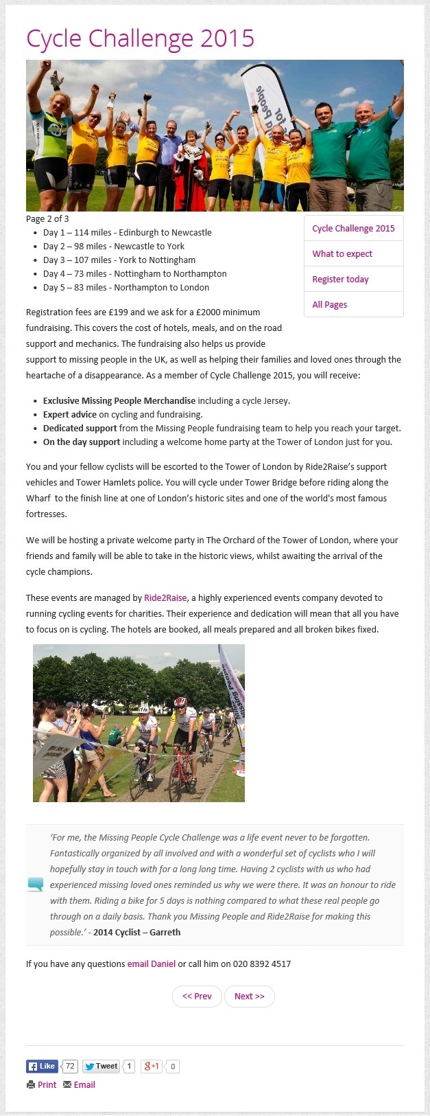 way the Cycle Challenge brings together families desperately missing loved ones with supporters of the charity, all pulling