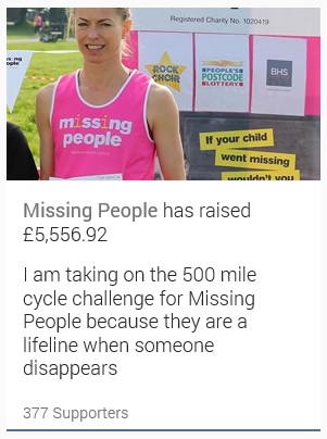She said: "The Missing People Cycle Challenge is particularly significant for me, a year on from the launch of