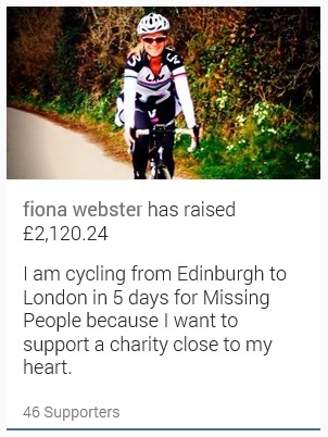 lead a 500-mile (805km) bike ride from Edinburgh to London in June to raise £10,000 for a missing persons charity.