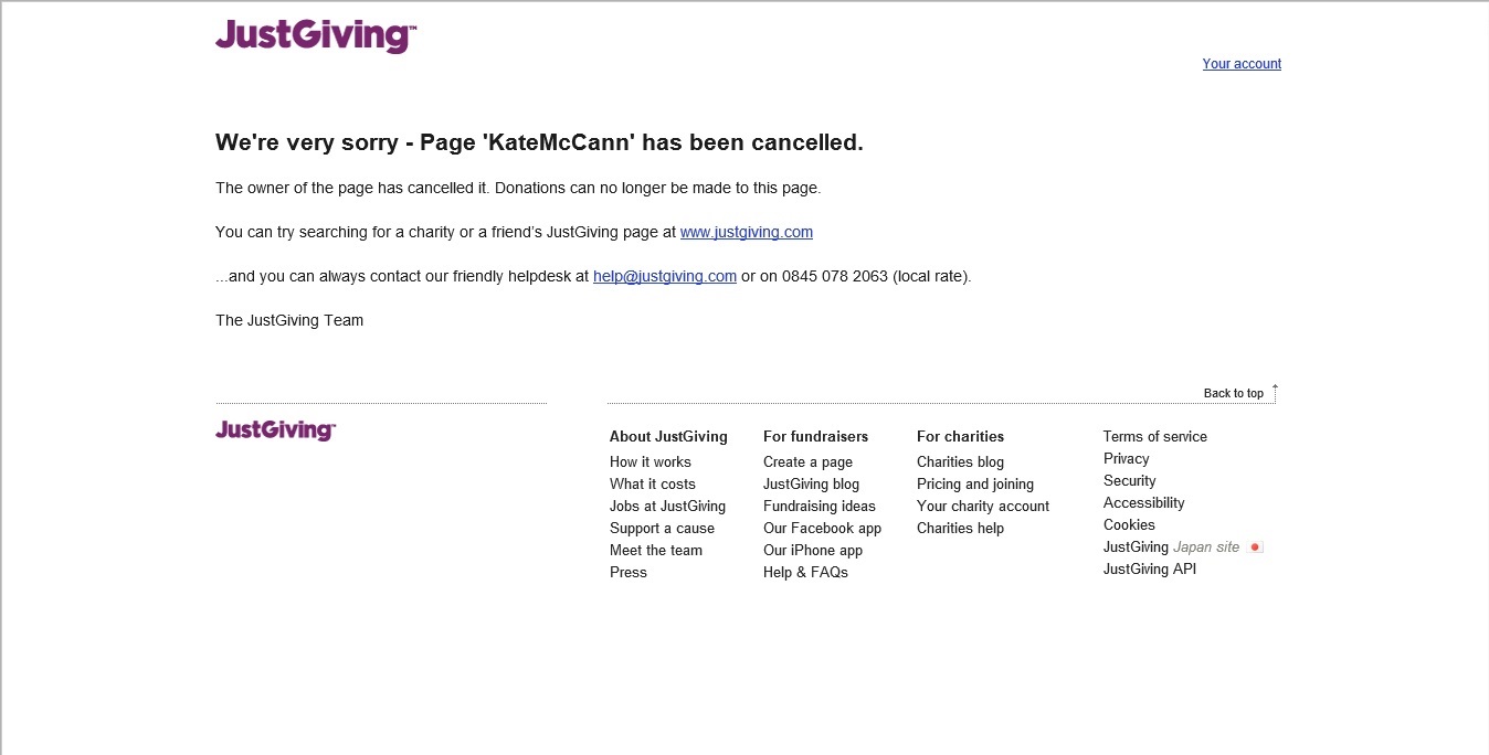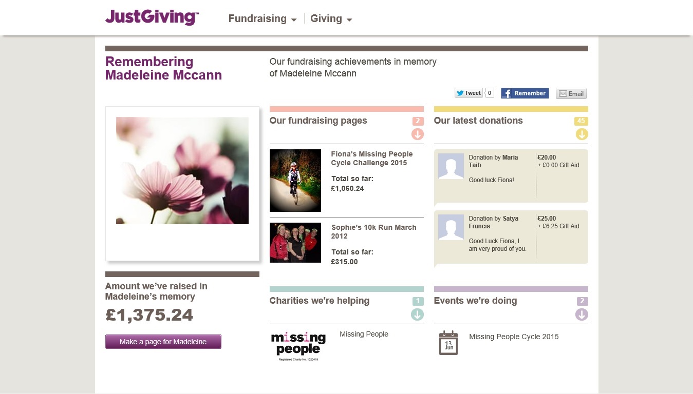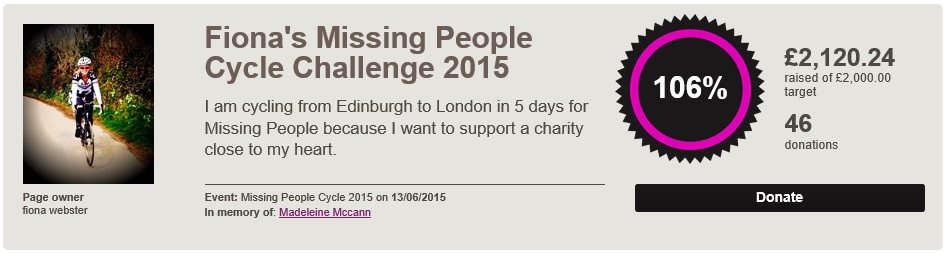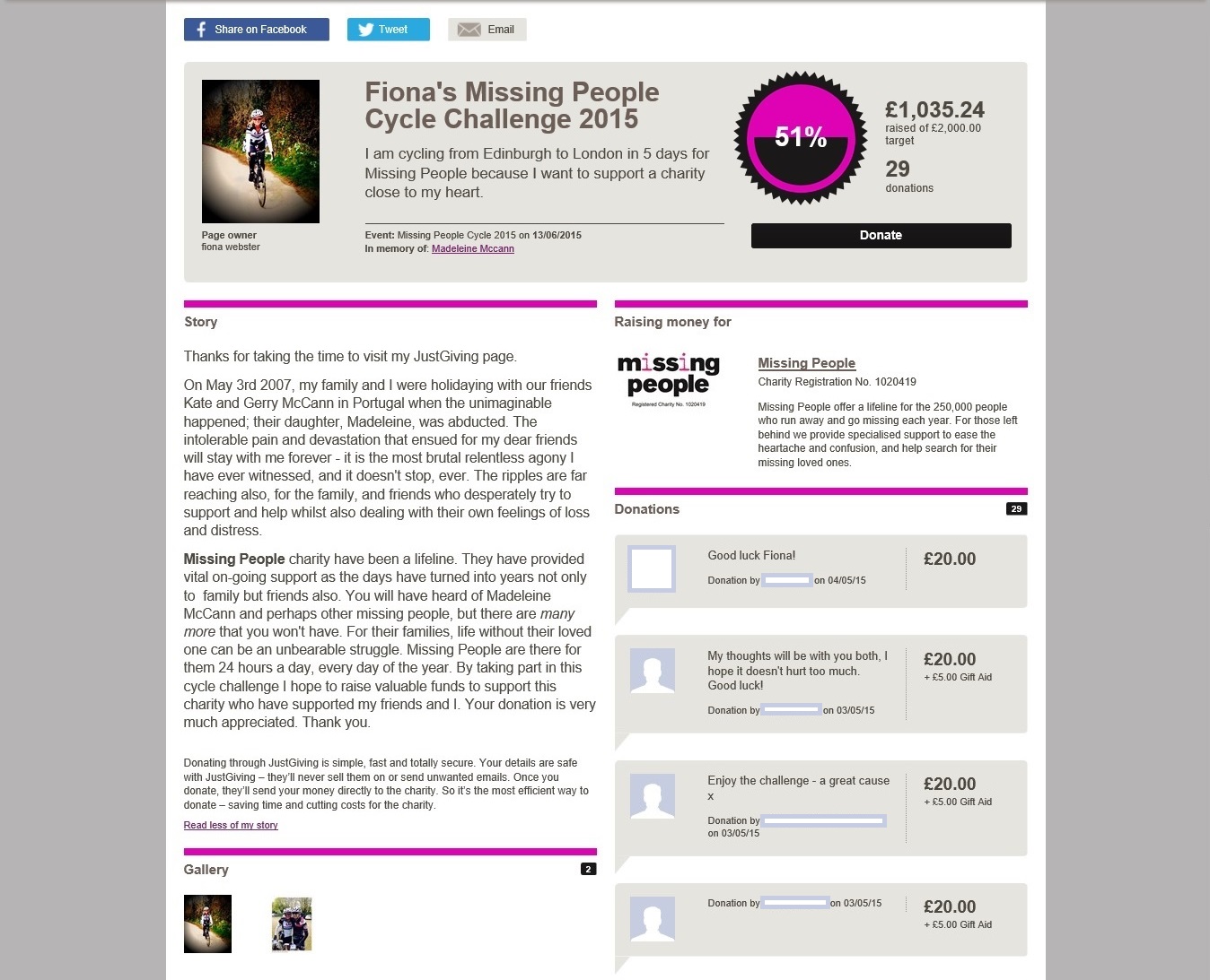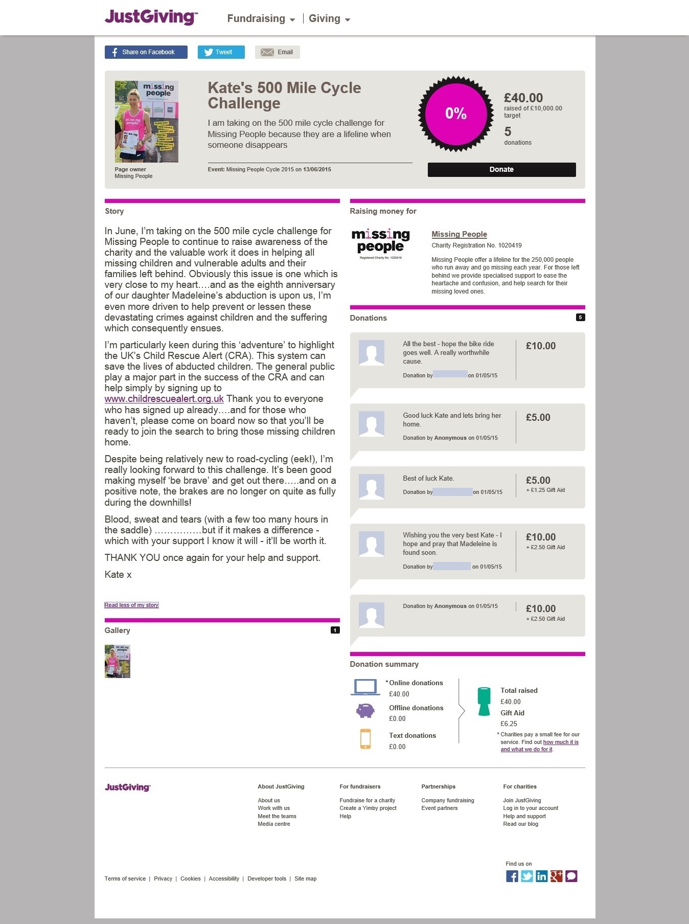 Kate McCann/Fiona Webster [Payne]: Fundraising to 07 June 2015 Missing People