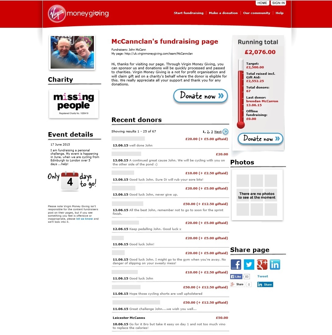 Fundraisers: John McCann My page: http://uk.virginmoneygiving.com/team/McCannclan