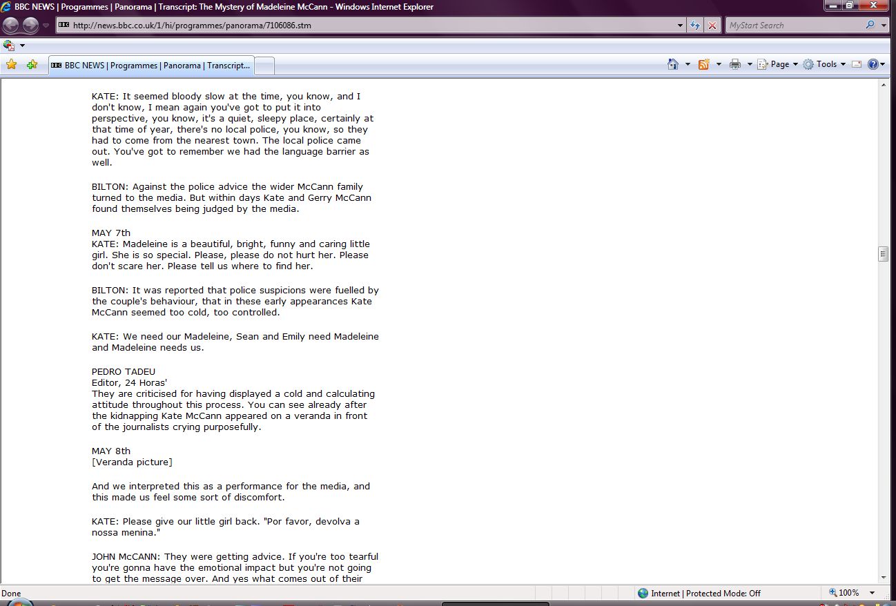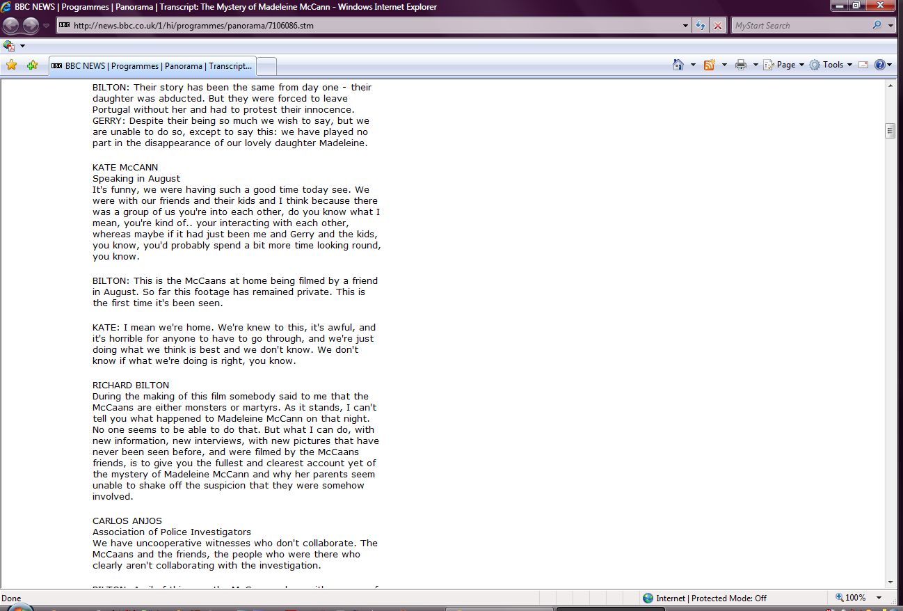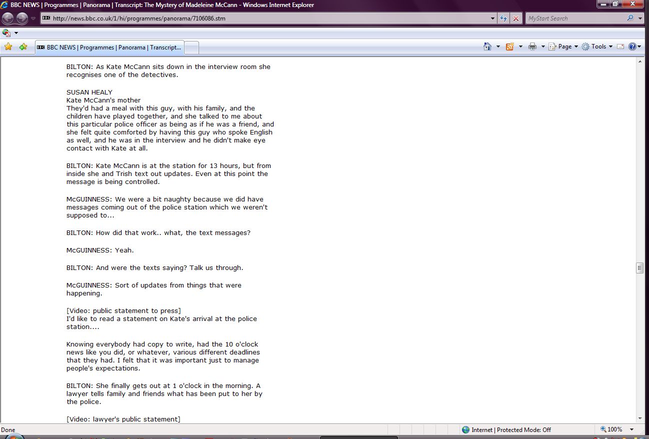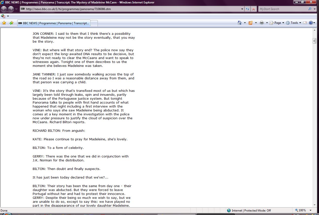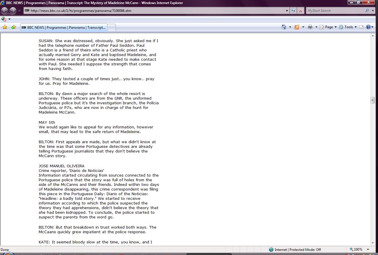 The Mystery of Madeleine McCann Transcript Screenshots |