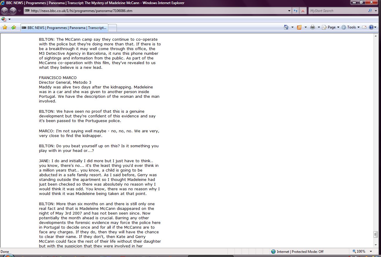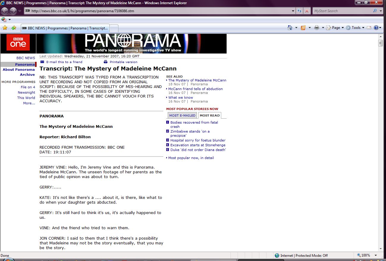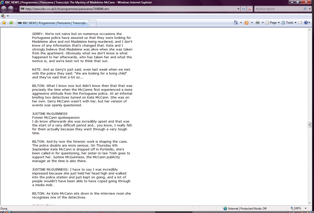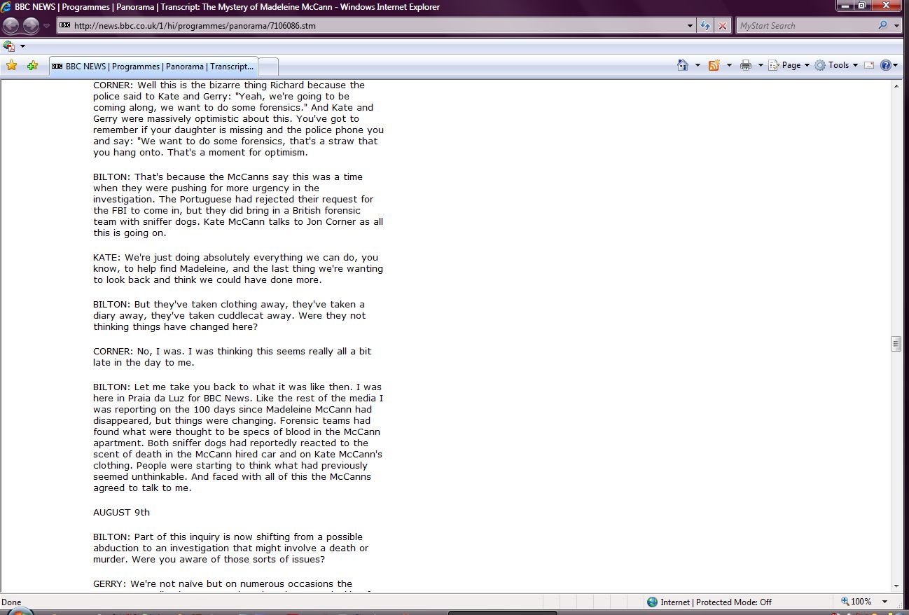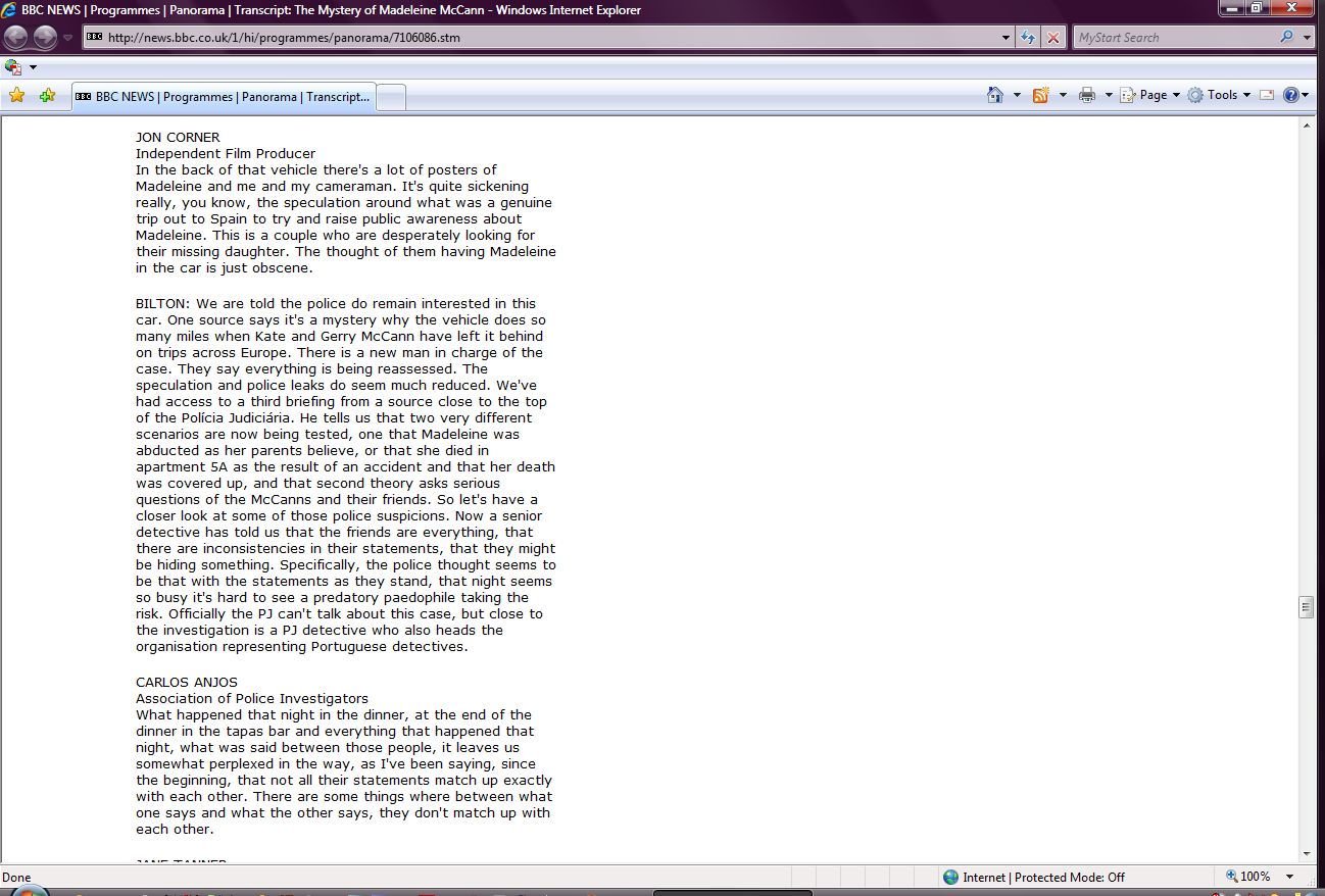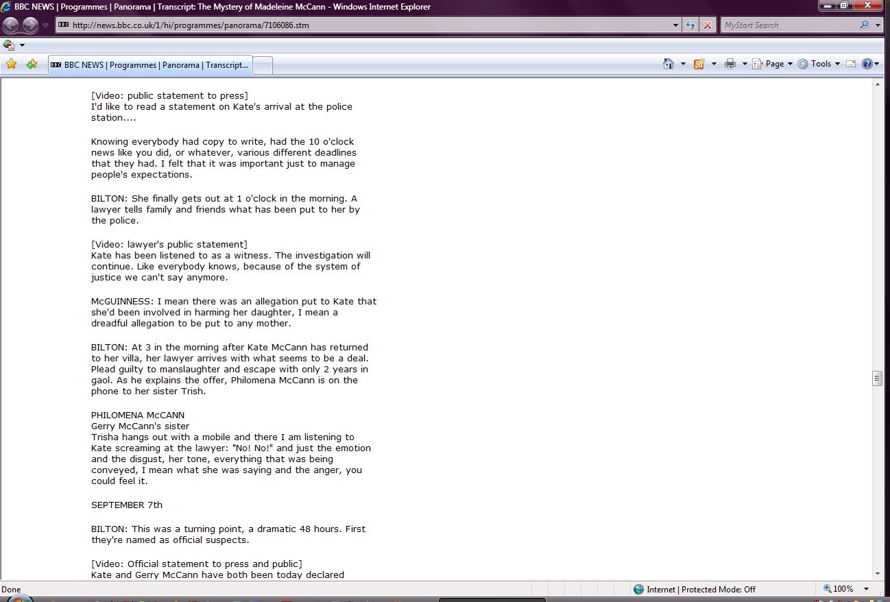 The Mystery of Madeleine McCann Transcript Screenshots |