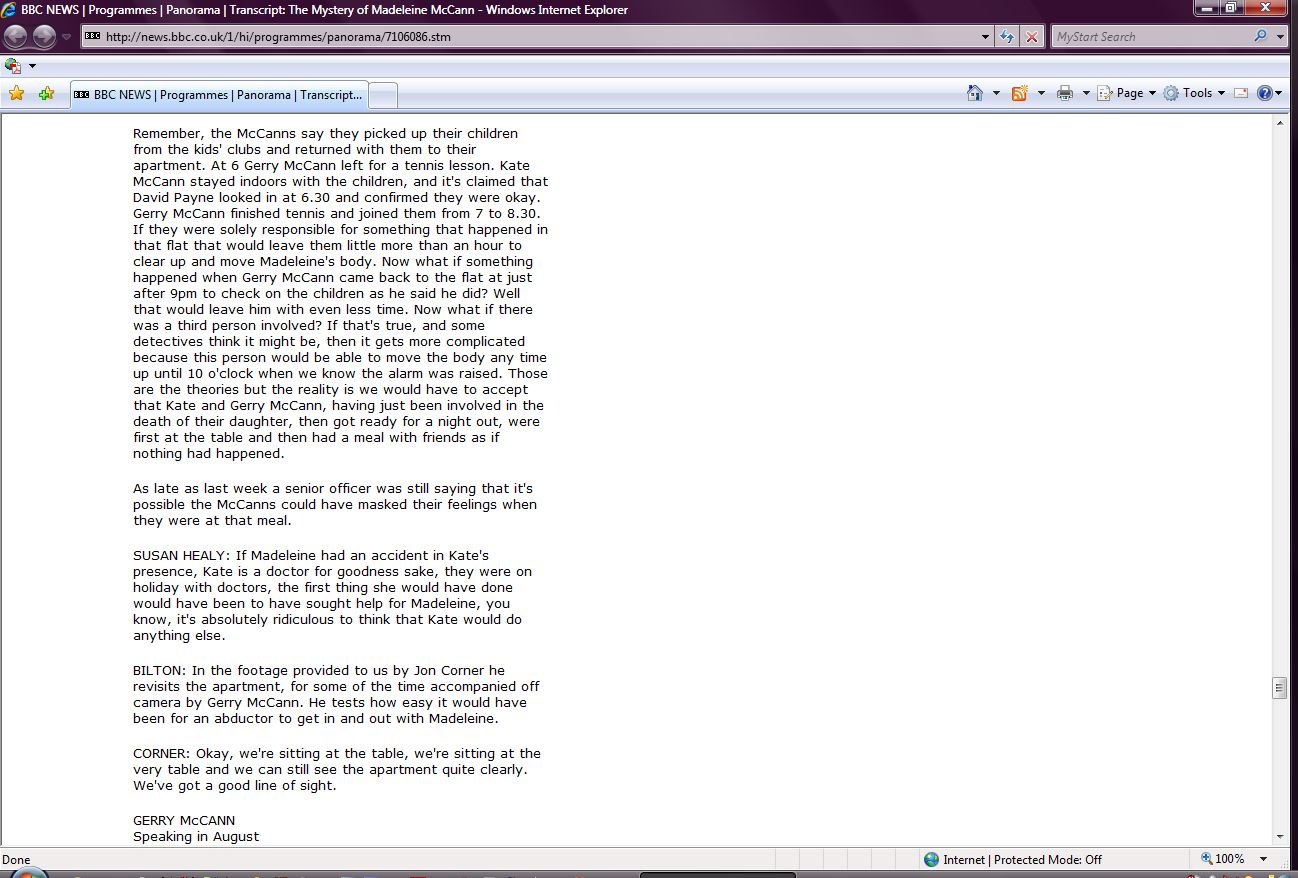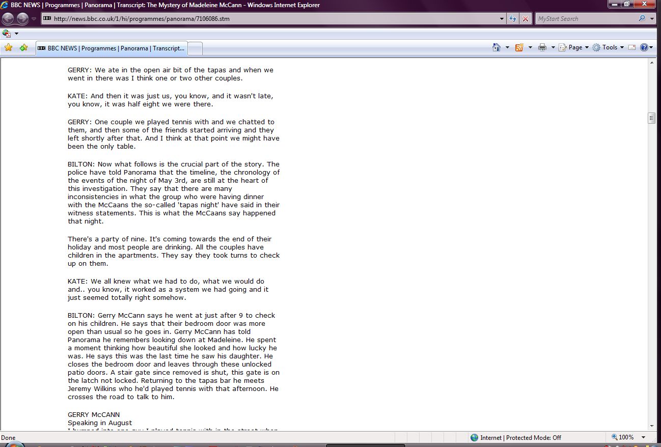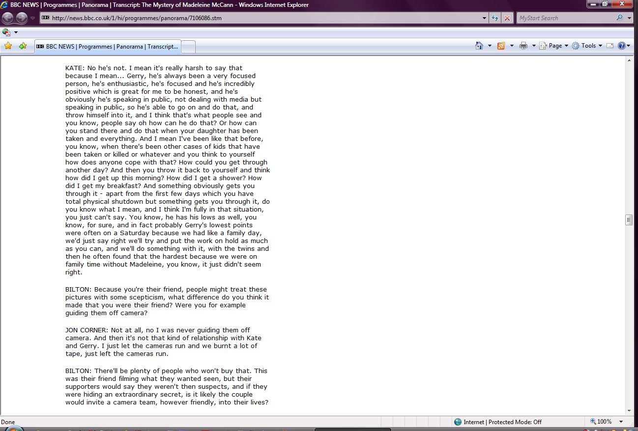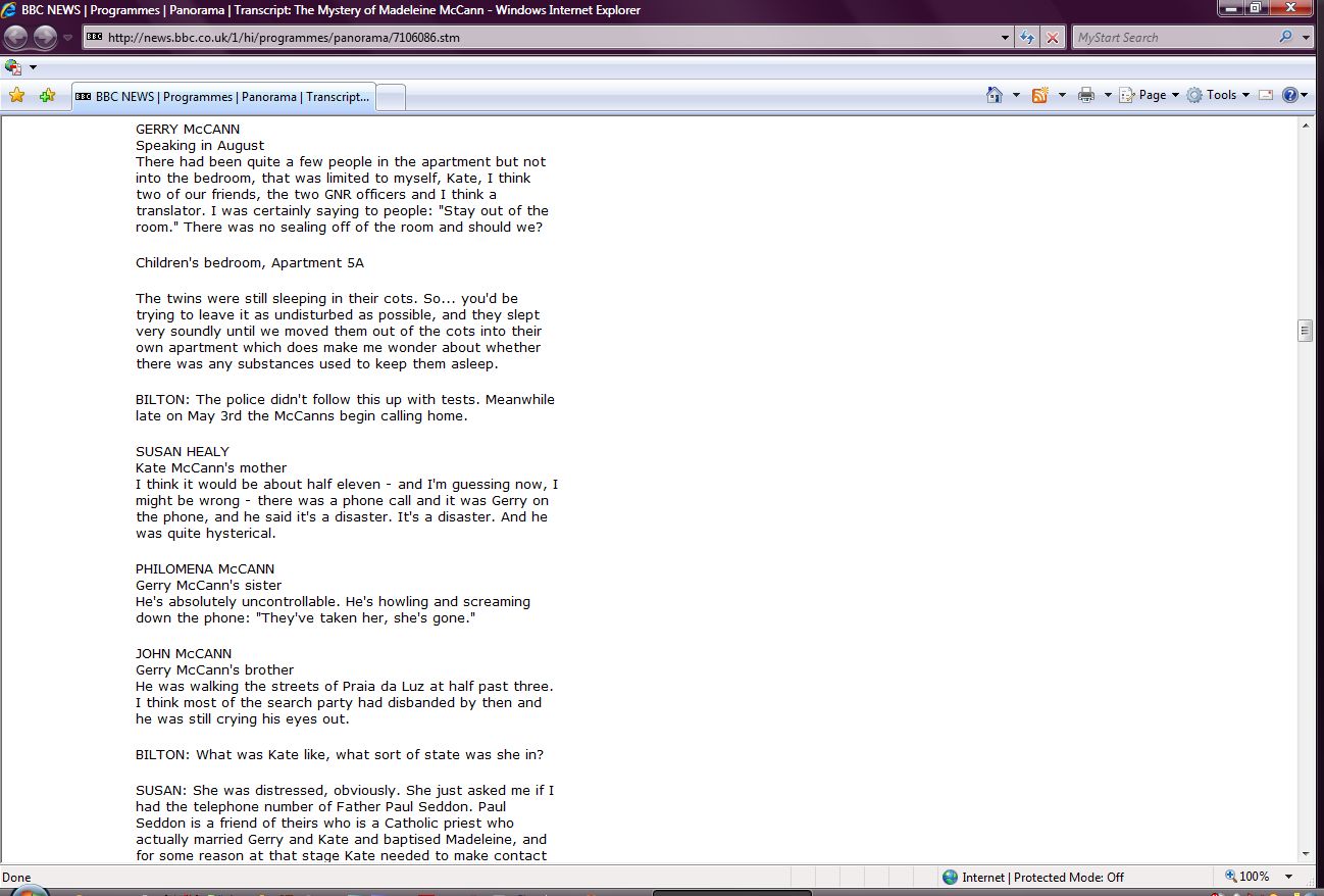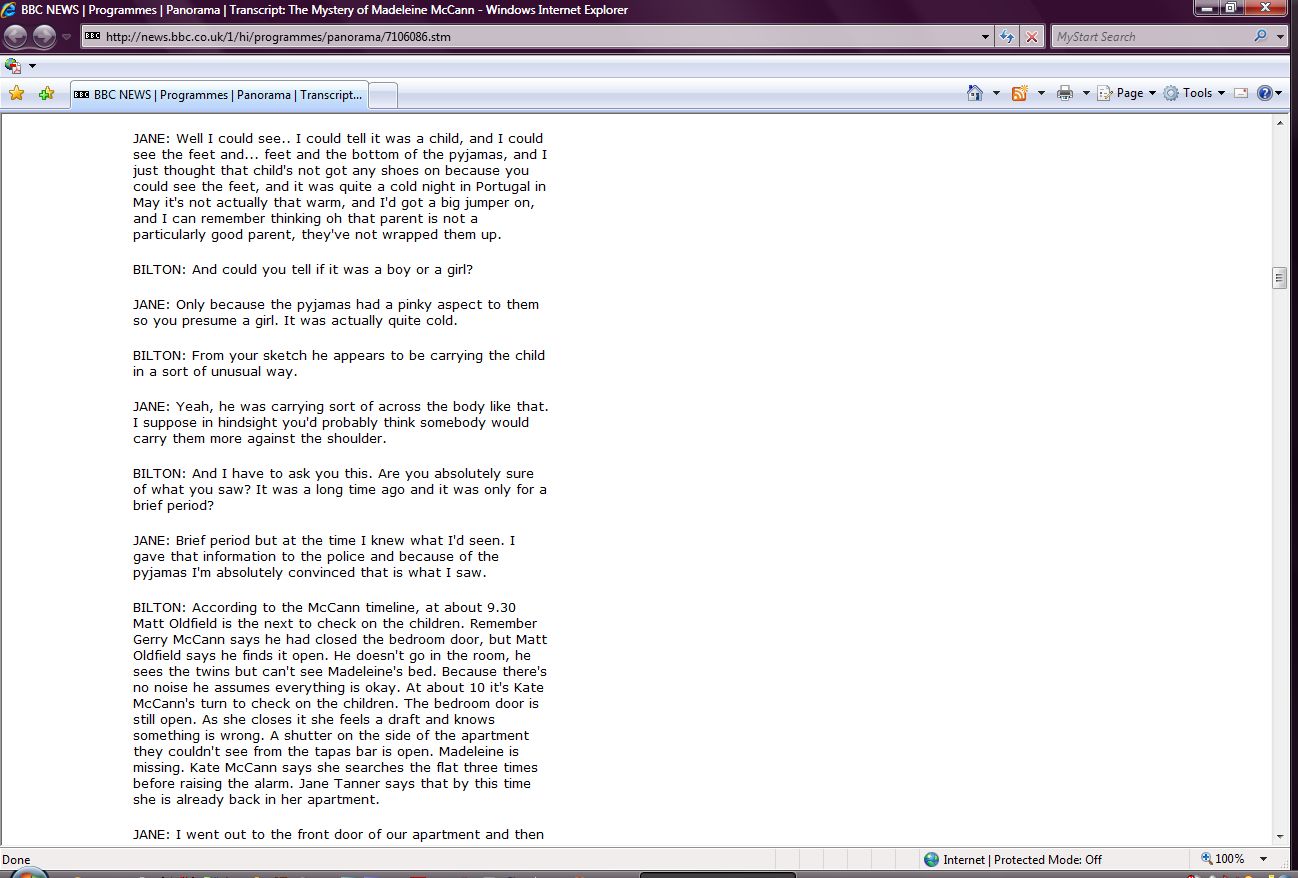The Mystery of Madeleine McCann Transcript Screenshots |