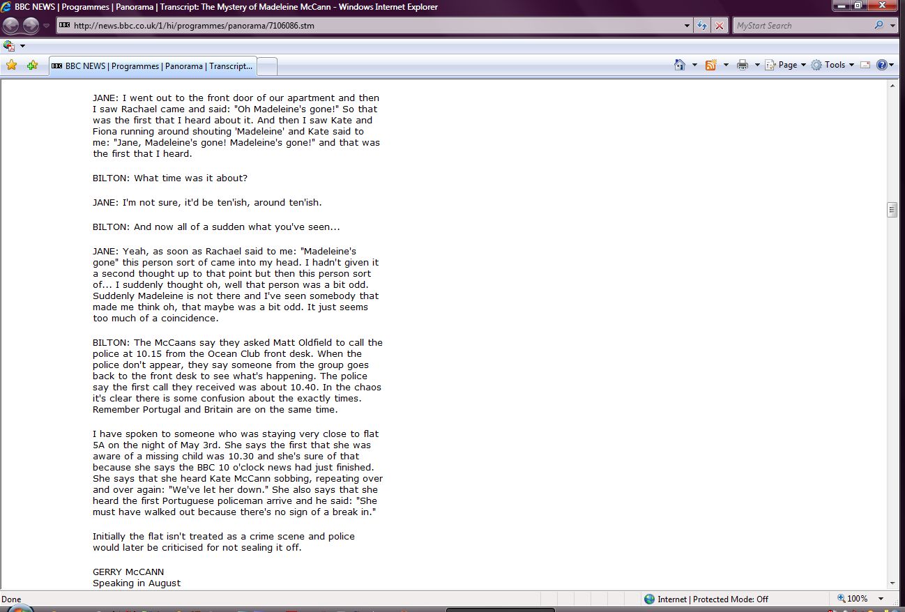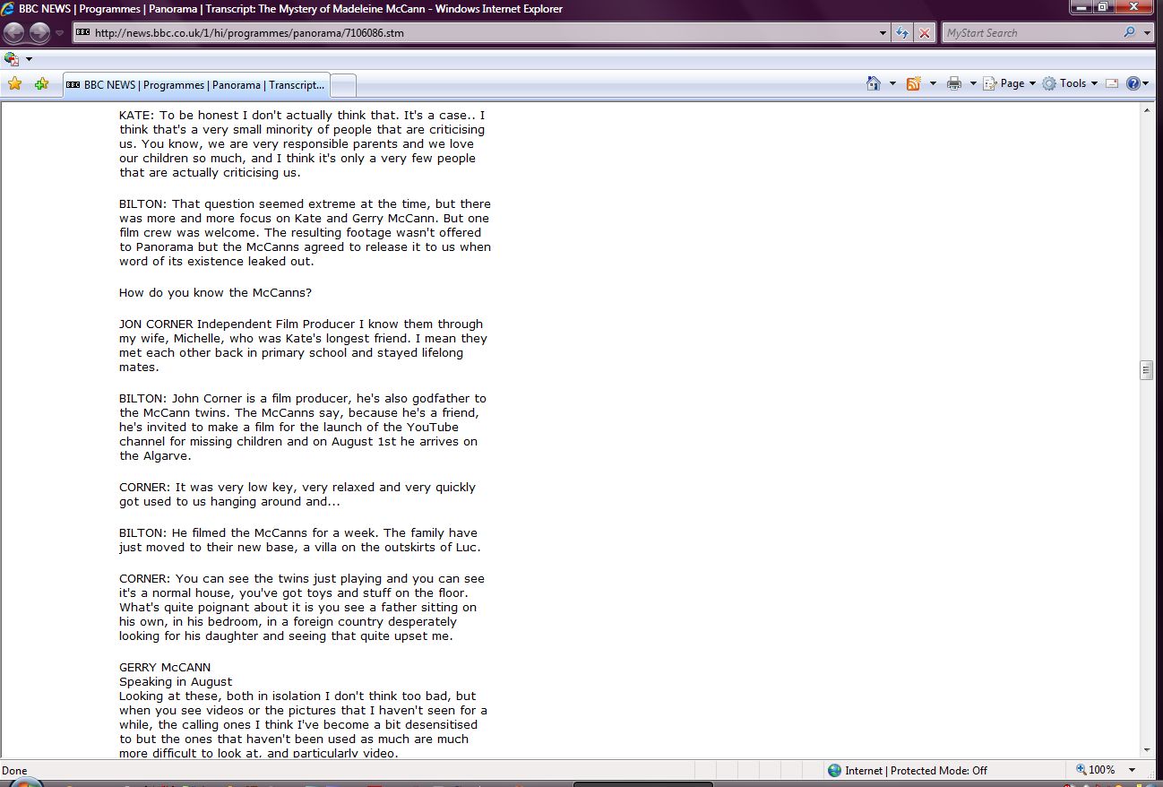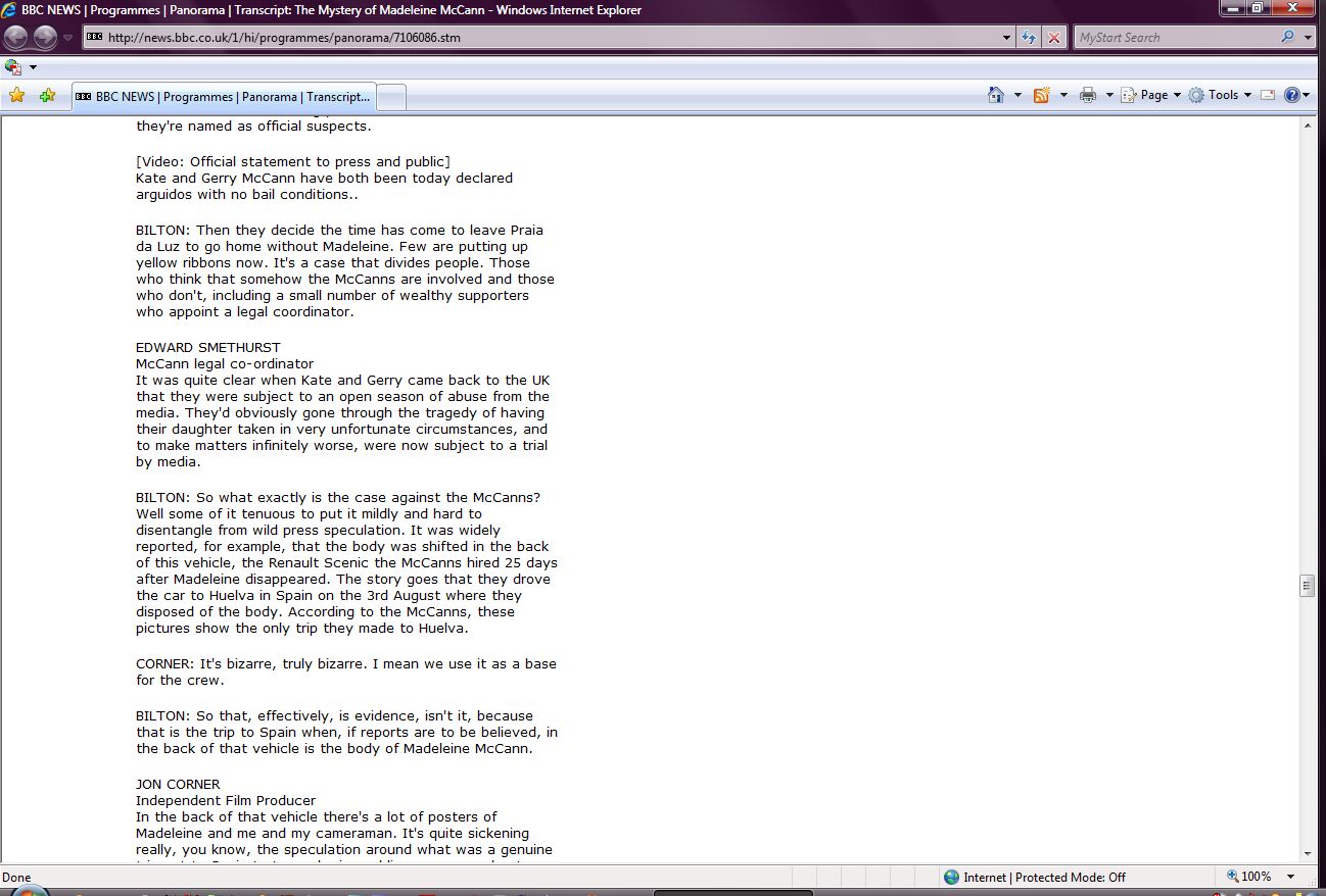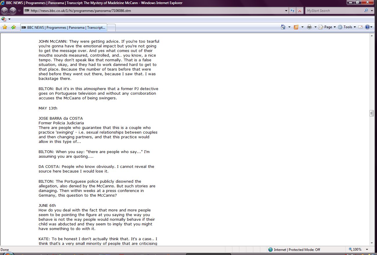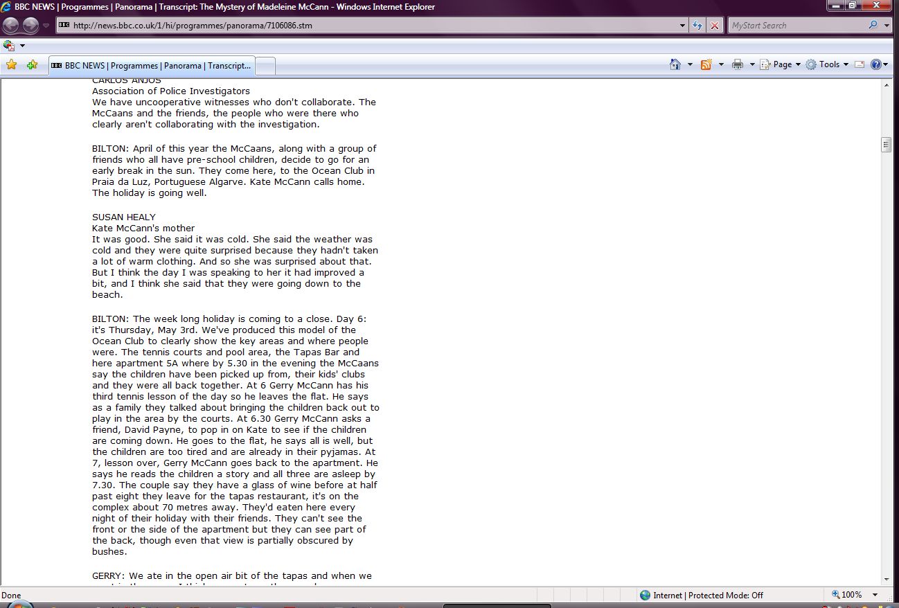 The Mystery of Madeleine McCann Transcript Screenshots |