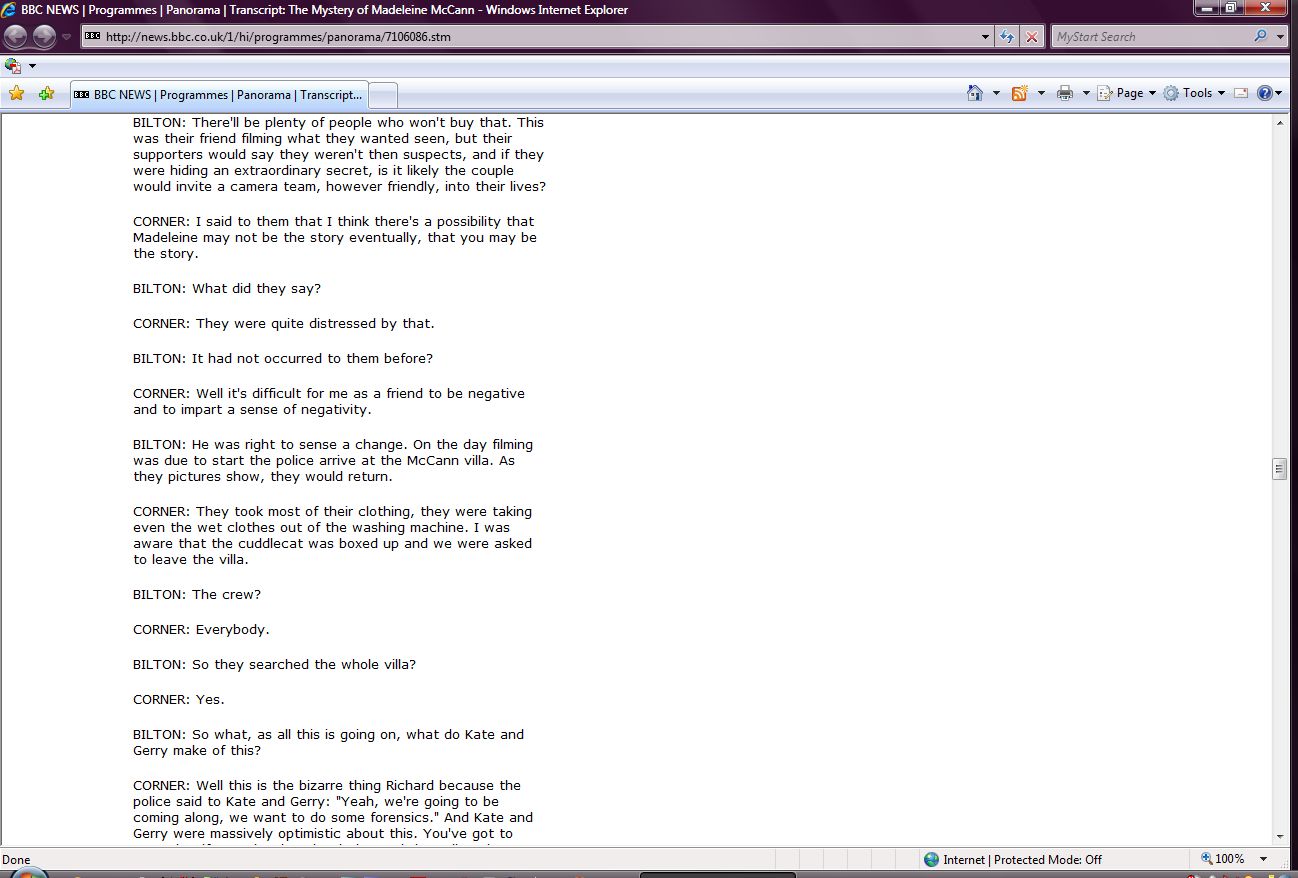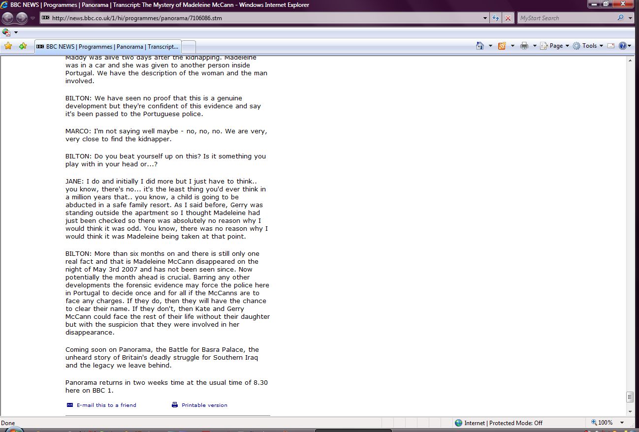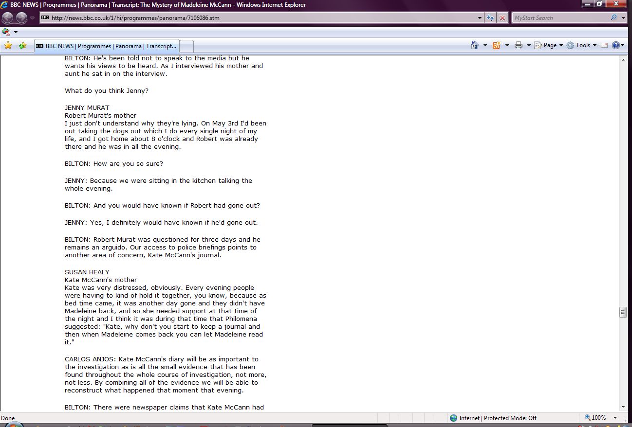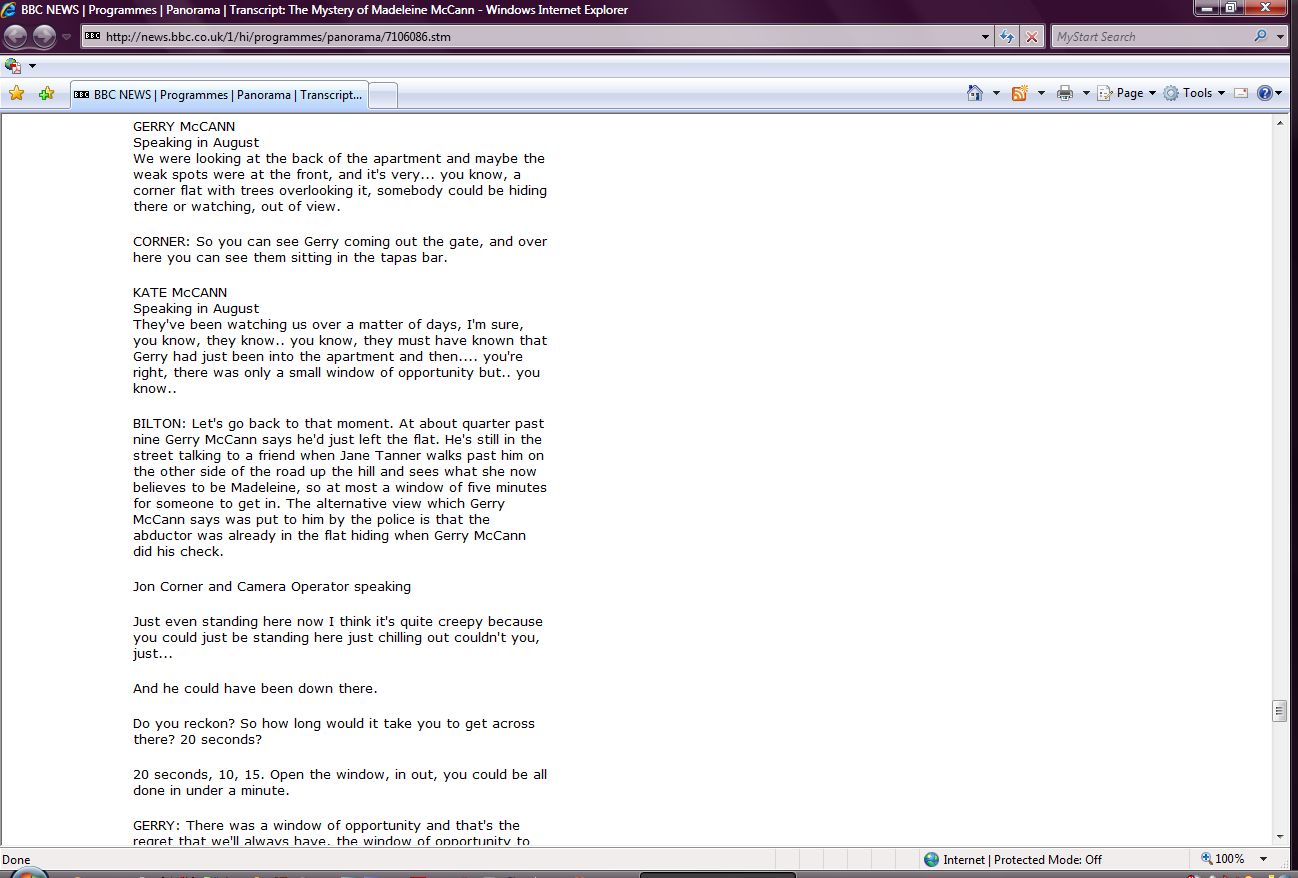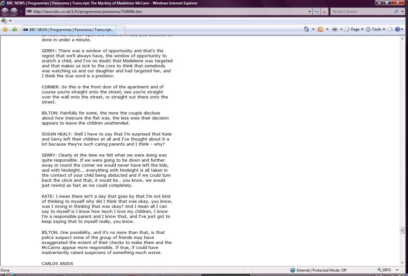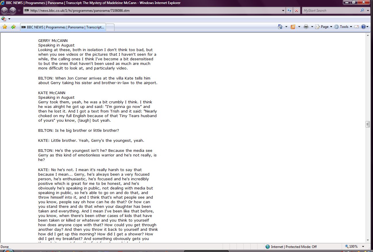 The Mystery of Madeleine McCann Transcript Screenshots |
