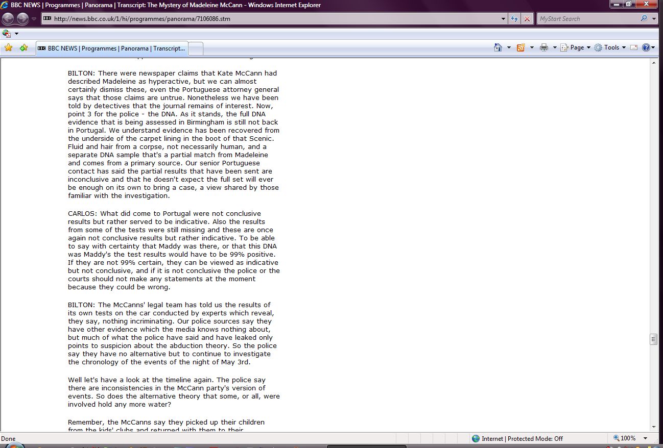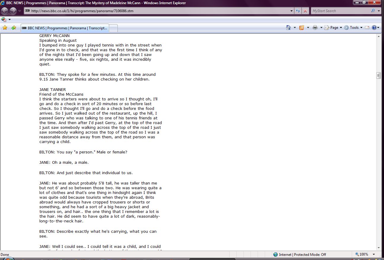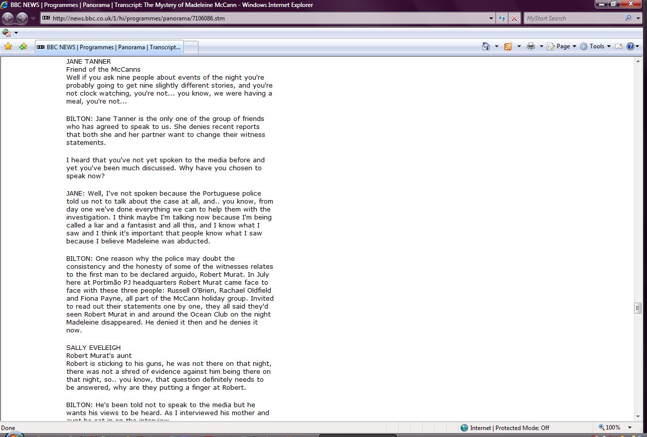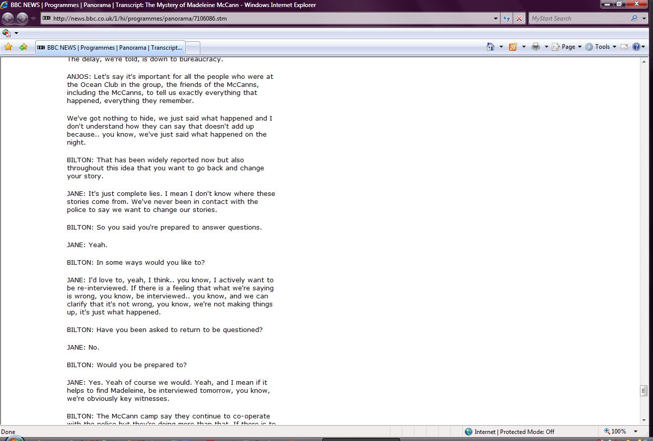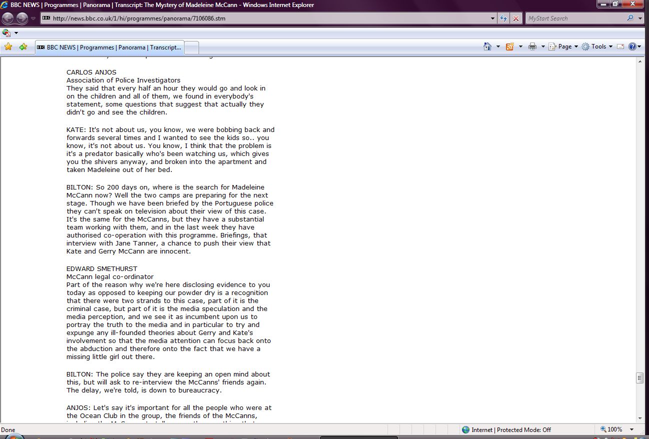 The Mystery of Madeleine McCann Transcript Screenshots |