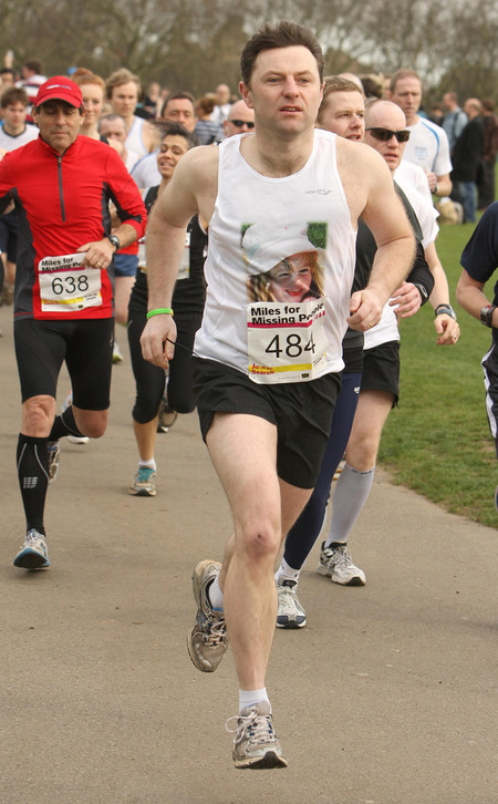 Gerry McCann, the father of Madeline McCann, takes part in the 'Miles for Missing People' charity run in Regent's Park, central London. 02/04/2011