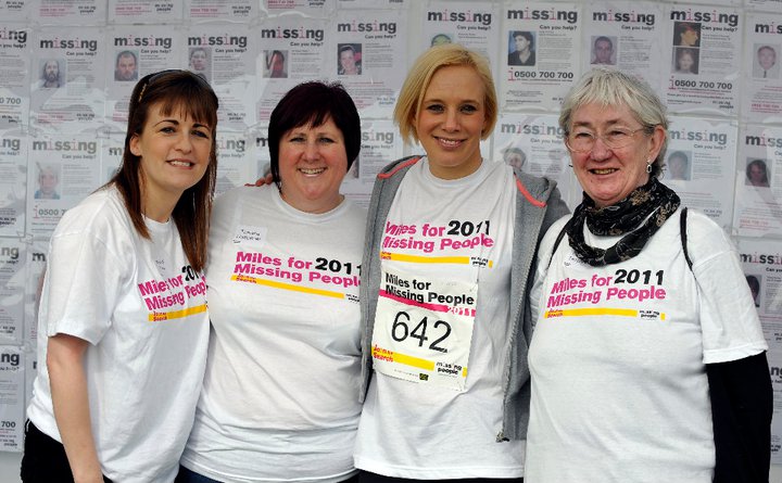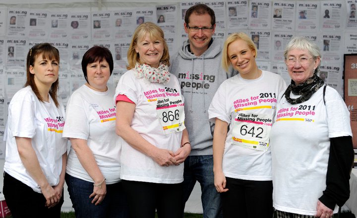 (left to right) Mother of Paul Carter Theresa Humphires, sister of Richey Edwards Rachel Elias, mother of Alan Templeton Elizabeth Templeton, parents of Madeline McCann Gerry and Kate McCann, and mother of Luke Durbin Nicki Durbin the 'Miles for Missing People' charity run in Regent's Park, central London. 02/04/2011