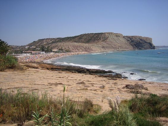 the main beach towards the cliffs |