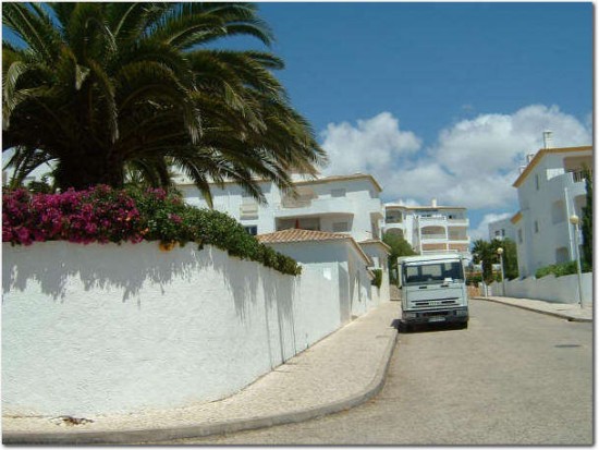 looking up the road from the carpark across