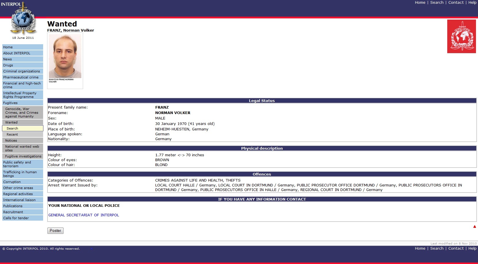 outstanding international arrest warrant outstanding which