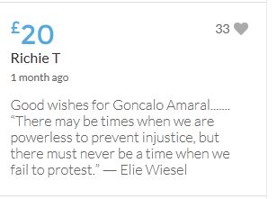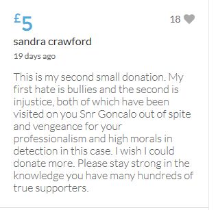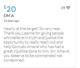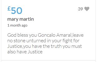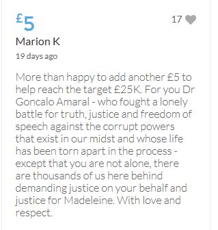 Nearly at the target! So very near. Thank you Leanne for giving people who believe in truth and justice the opportunity to really reach out and help Goncalo Amaral who has had a great injustice done to him. Snr Amaral, you deserve to be commended not condemned.