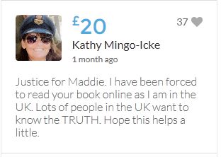 Justice for Maddie. I have been forced to read your book online as I am in the UK. Lots of people in the UK want to know the TRUTH. Hope this helps a little.