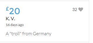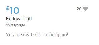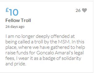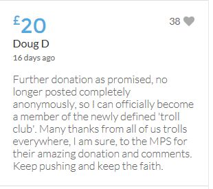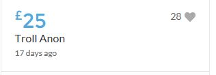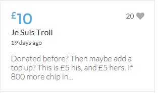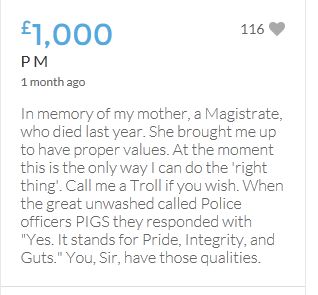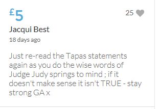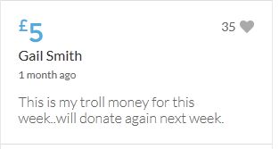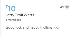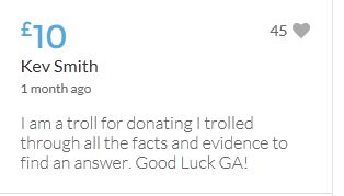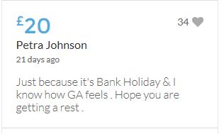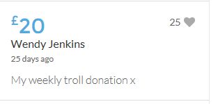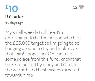 My small weekly troll fee. I'm determined to be the person who hits the £25,000 target so I'm going to be hanging around to try and make sure that I am! I hope that GA can take some solace from this fund, know that he is supported by many and can feel the warmth and best wishes directed towards him x