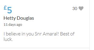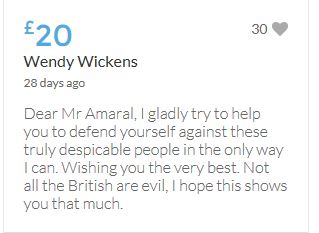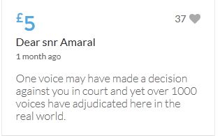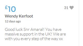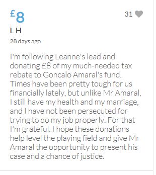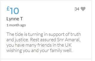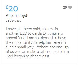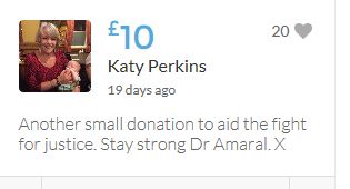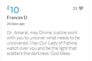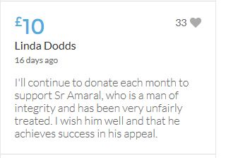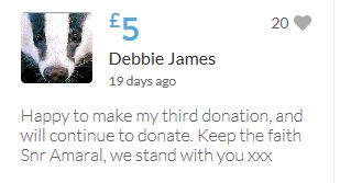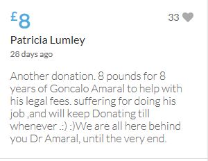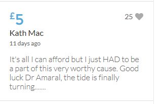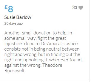 It's all I can afford but I just HAD to be a part of this very worthy cause. Good luck Dr Amaral, the tide is finally turning.......