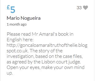 Please read Mr Amaral's book in English here: http://goncaloamaraltruthofthelie.blogspot.co.uk. The story of the investigation, based on the case files, as agreed by the Lisbon court judge. Open your eyes, make your own mind up.