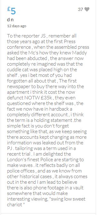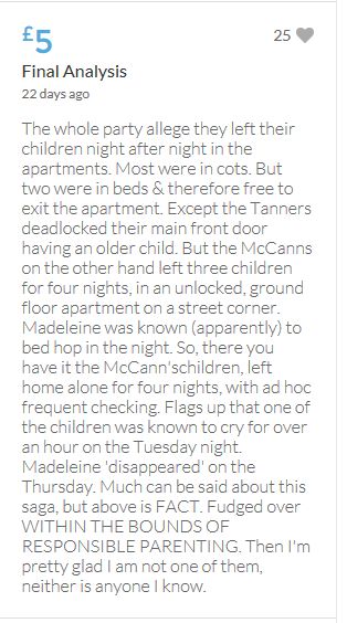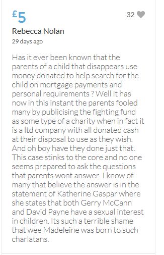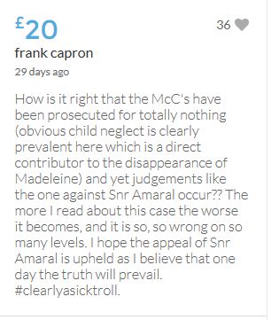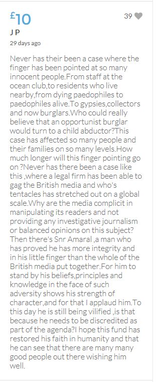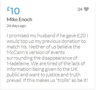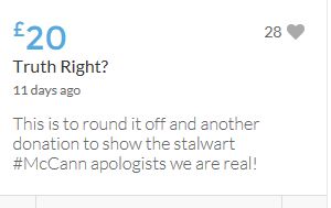 This is to round it off and another donation to show the stalwart #McCann apologists we are real!
