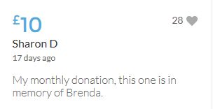 A second donation for Dr Amaral in memory of Brenda Leyland.