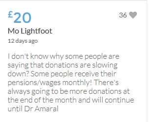 I don't know why some people are saying that donations are slowing down? Some people receive their pensions/wages monthly! There's always going to be more donations at the end of the month and will continue until Dr Amaral