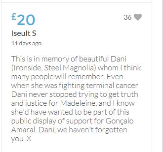 This is in memory of beautiful Dani (Ironside, Steel Magnolia) whom I think many people will remember. Even when she was fighting terminal cancer Dani never stopped trying to get truth and justice for Madeleine, and I know she'd have wanted to be part of this public display of support for Gonçalo Amaral. Dani, we haven't forgotten you. X